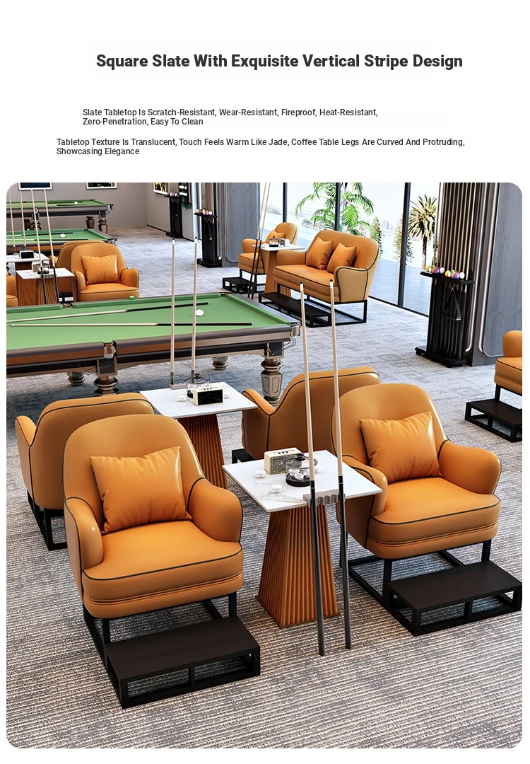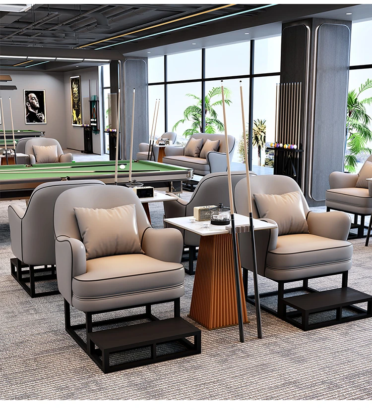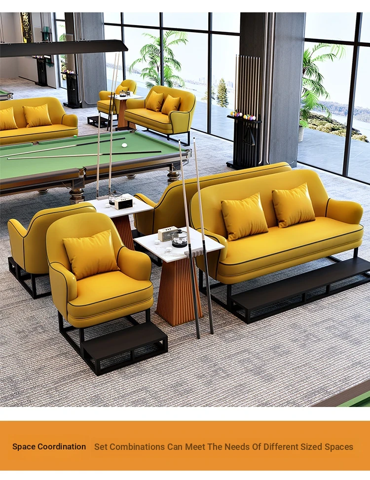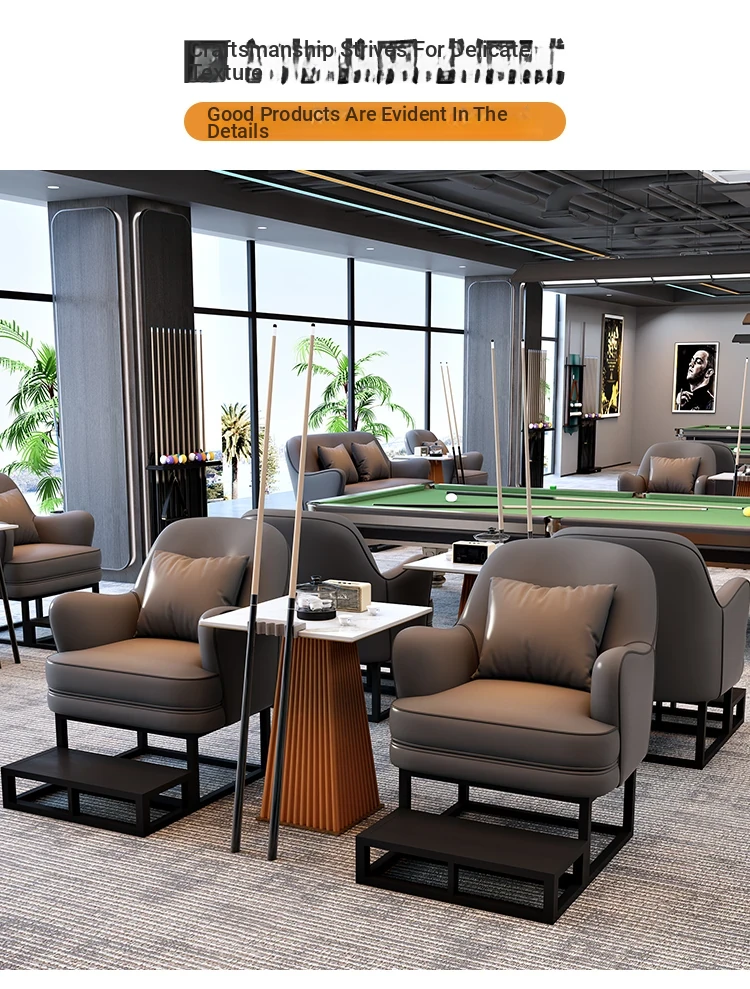 Premium Pool Hall Sofa Seating - Comfortable Viewing Chairs for Billiard Rooms, Ideal for Spectators in High-End Lounge Areas with Reception Tables and Sofas