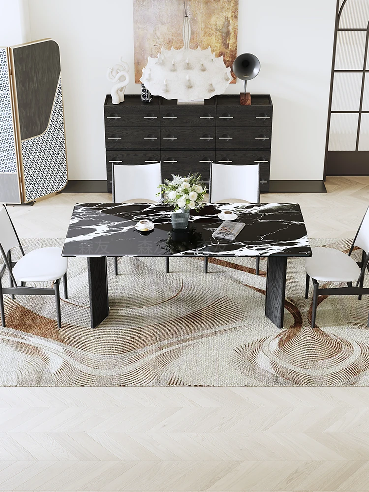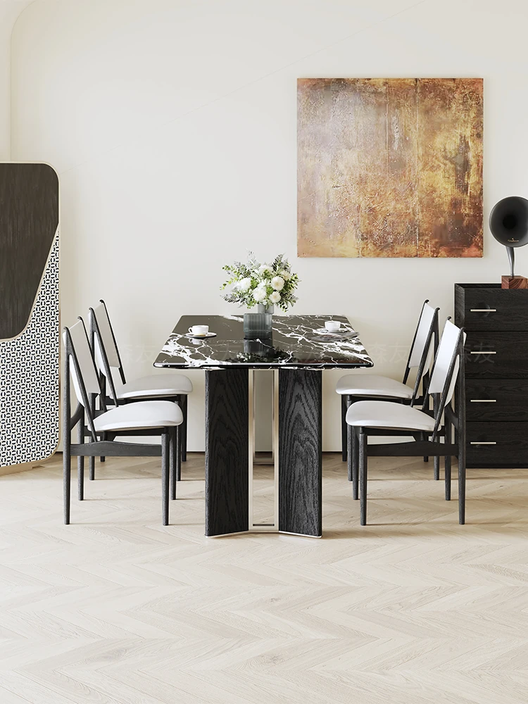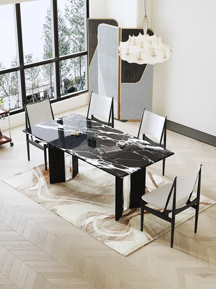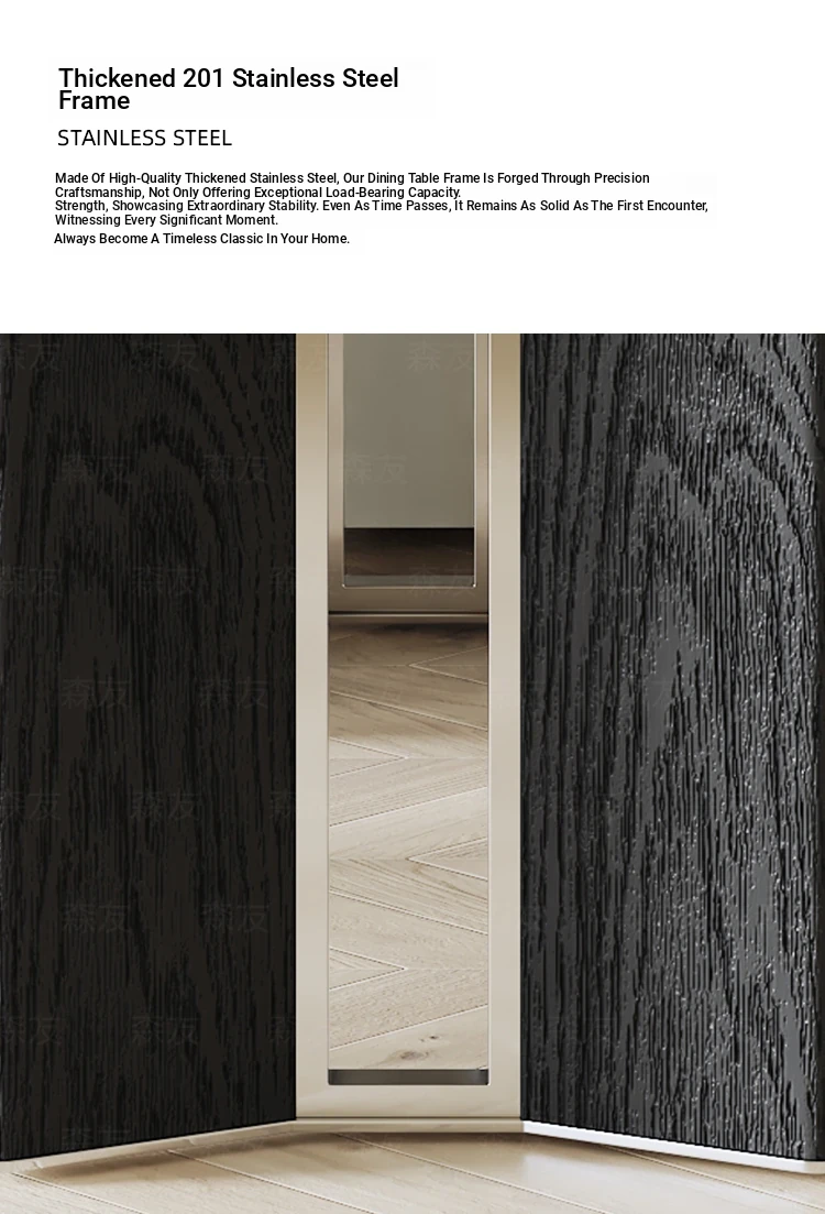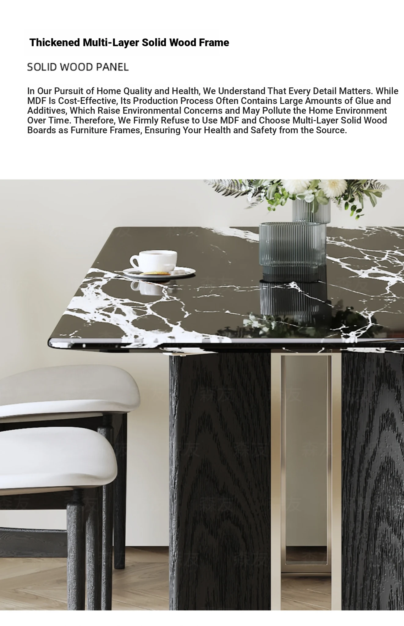 78.74 in Bulgari Black Natural Luxury Stone Solid Wood Stainless Steel Dining Table