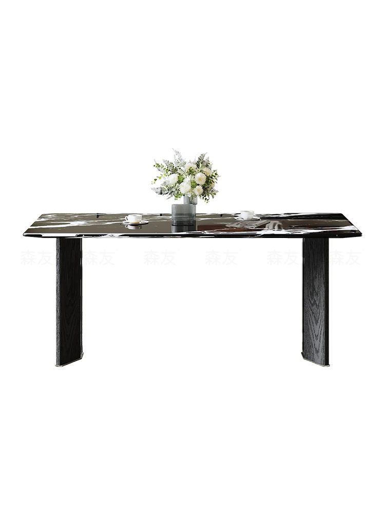70.87 in Bulgari Black Natural Luxury Stone Solid Wood Stainless Steel Dining Table