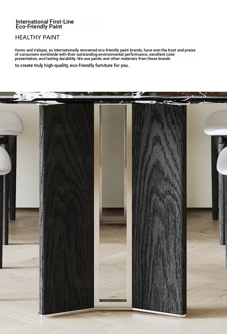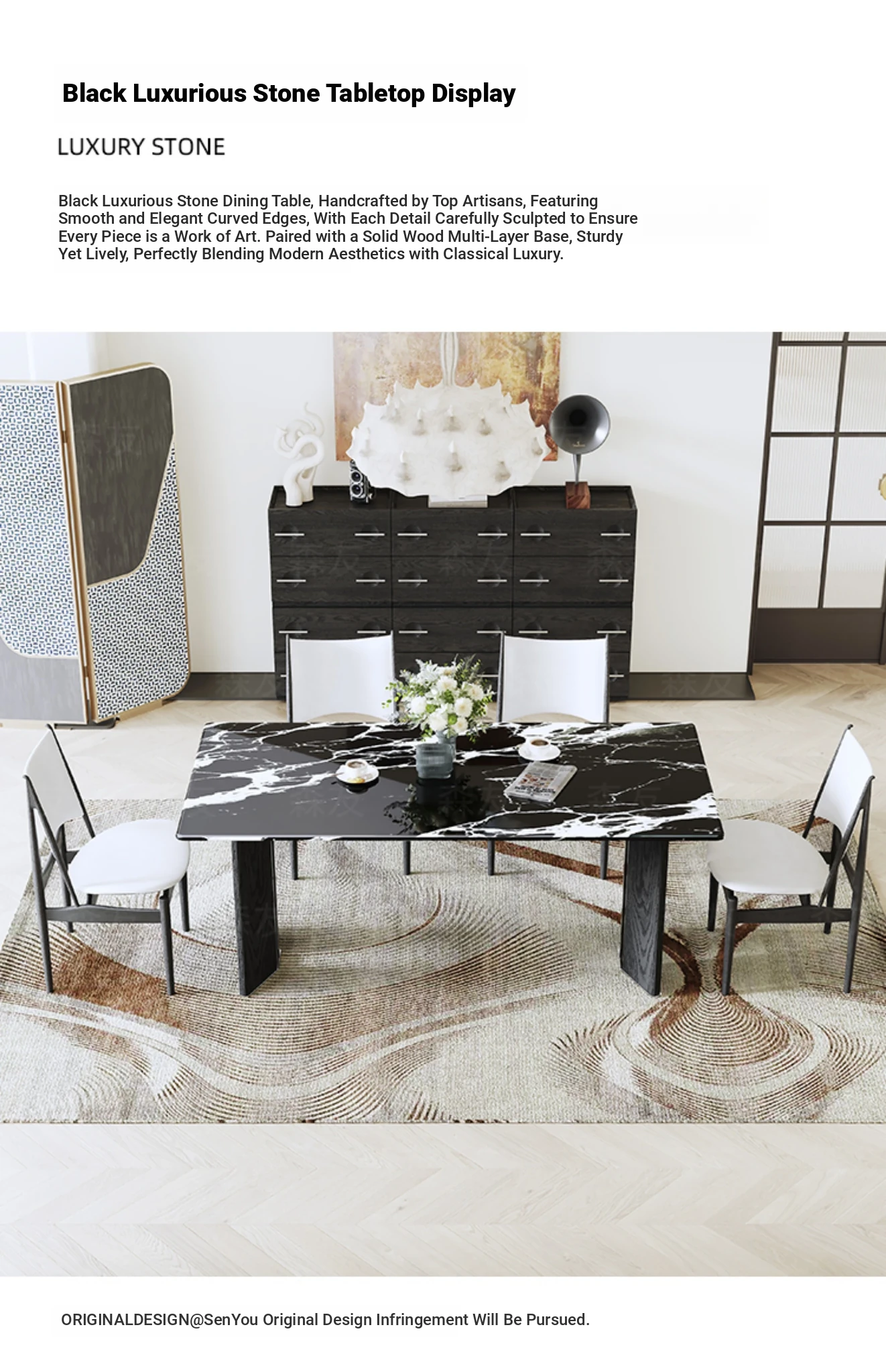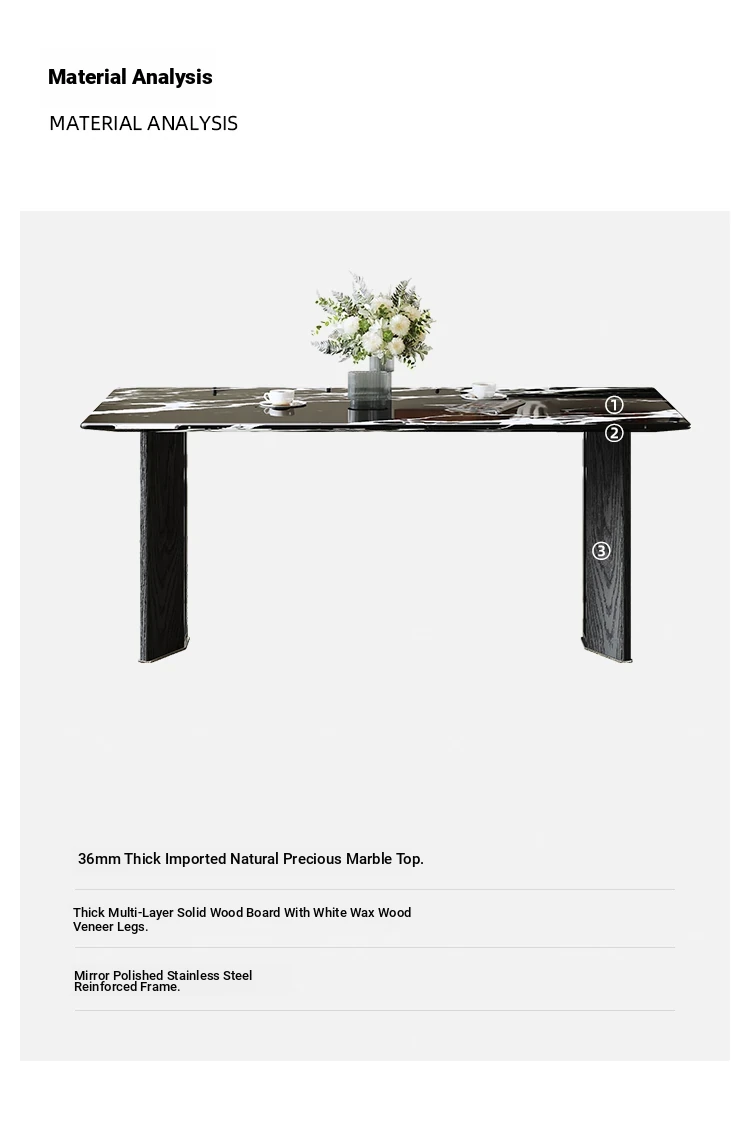 55.12 in Bulgari Black Natural Luxury Stone Solid Wood Stainless Steel Dining Table