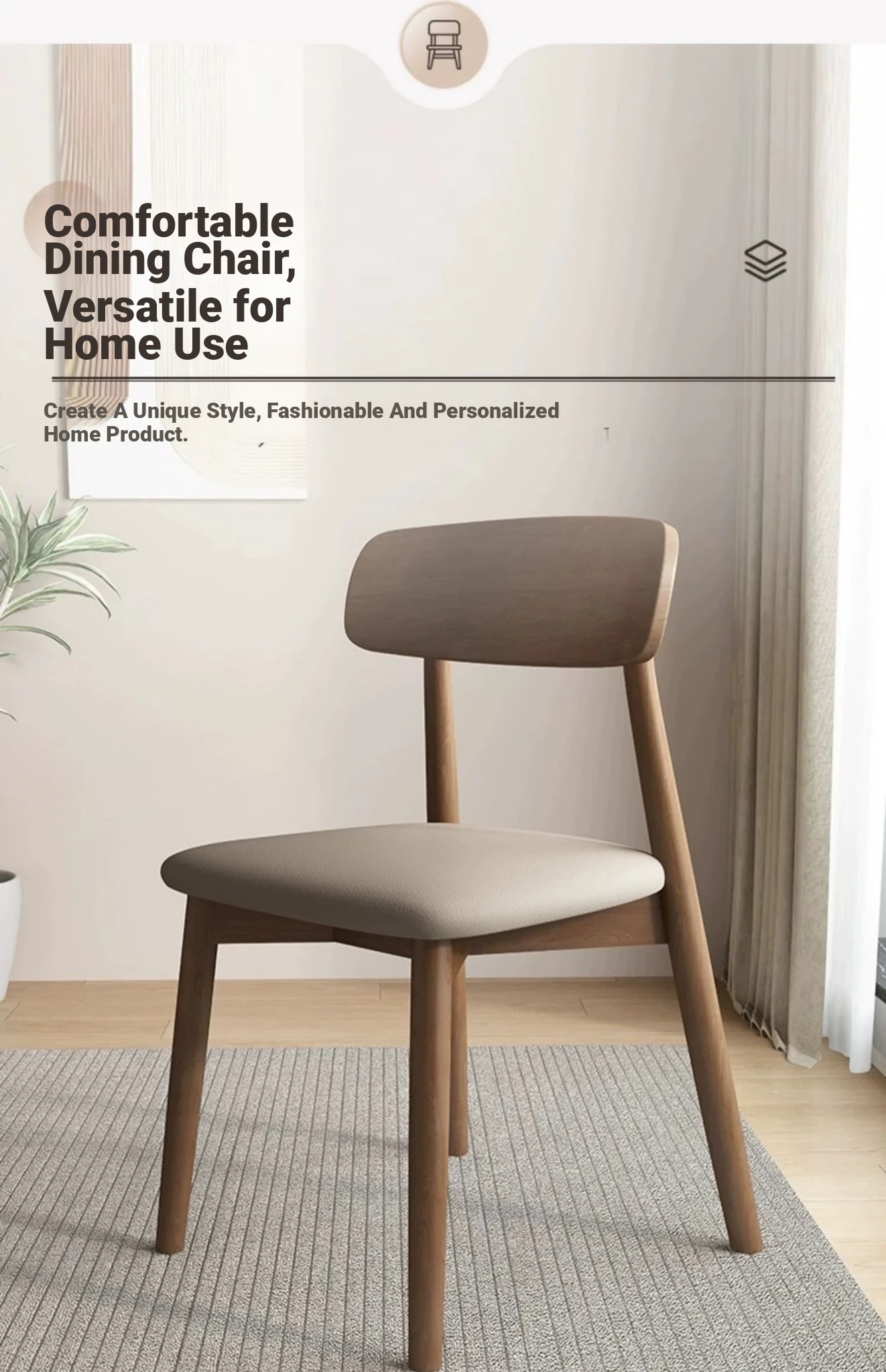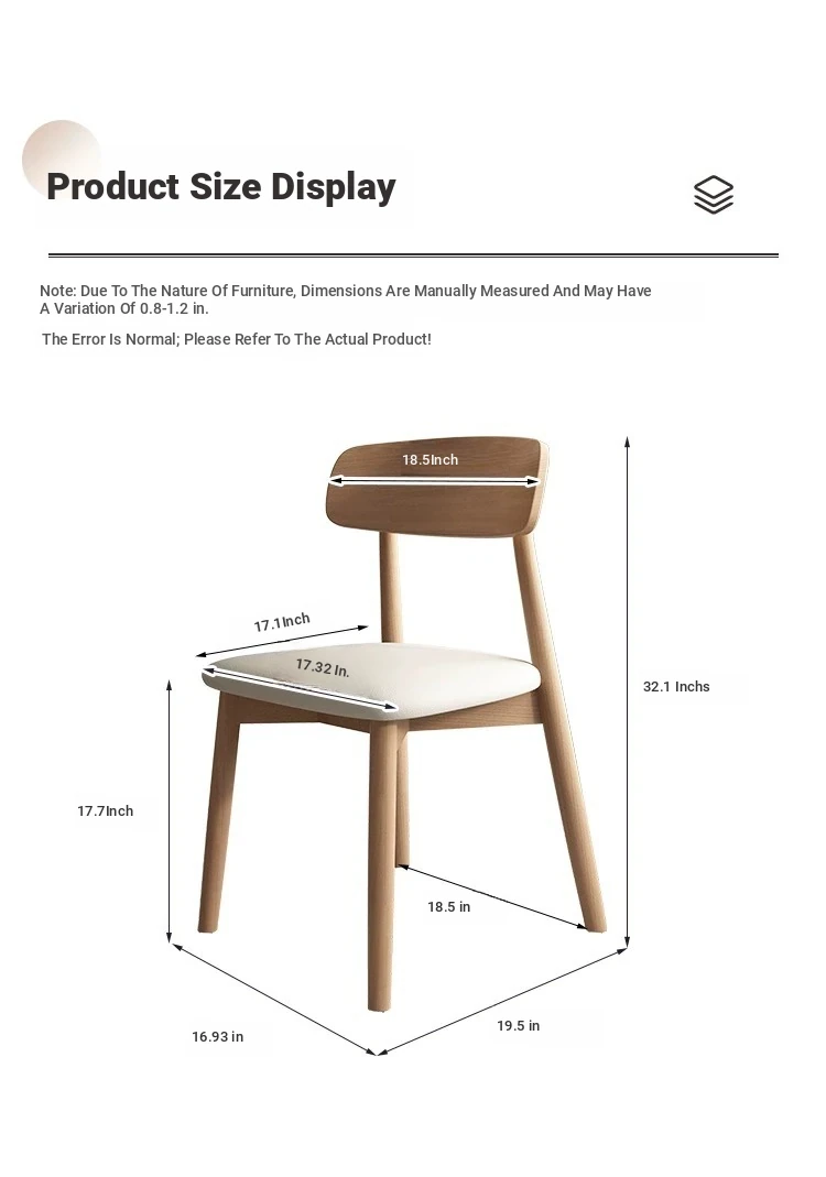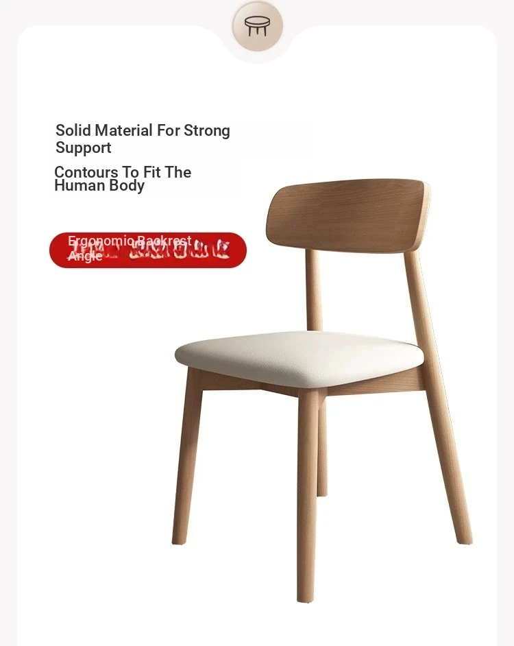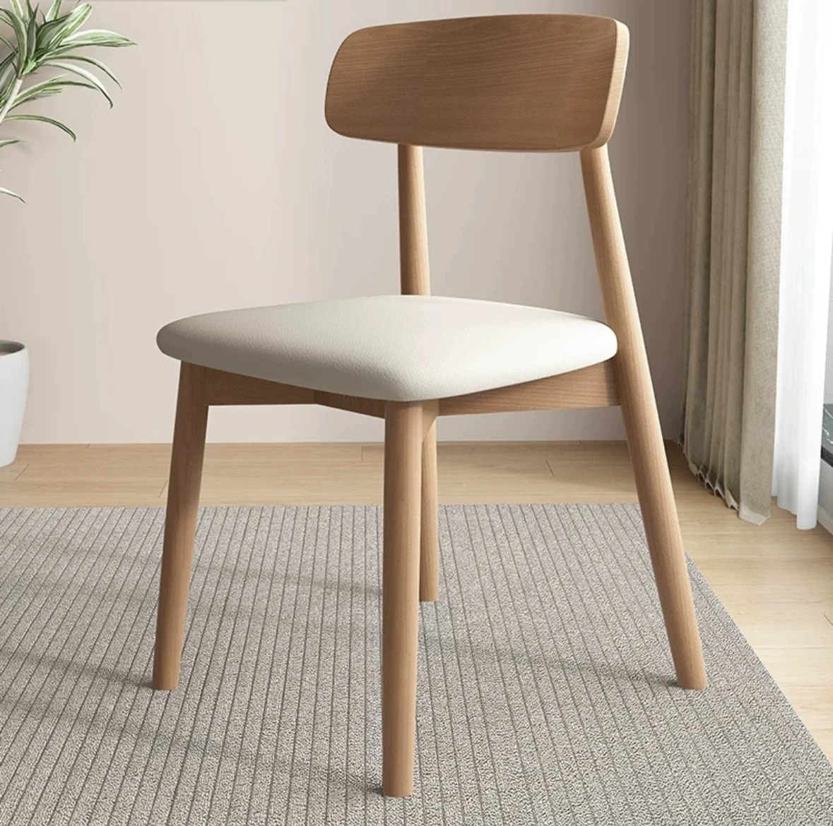 Solid Wood Dining Chair - Modern Nordic Style with Backrest, Ideal for Home and Restaurant Use, Creamy Aesthetic for Elegant Dining Experience