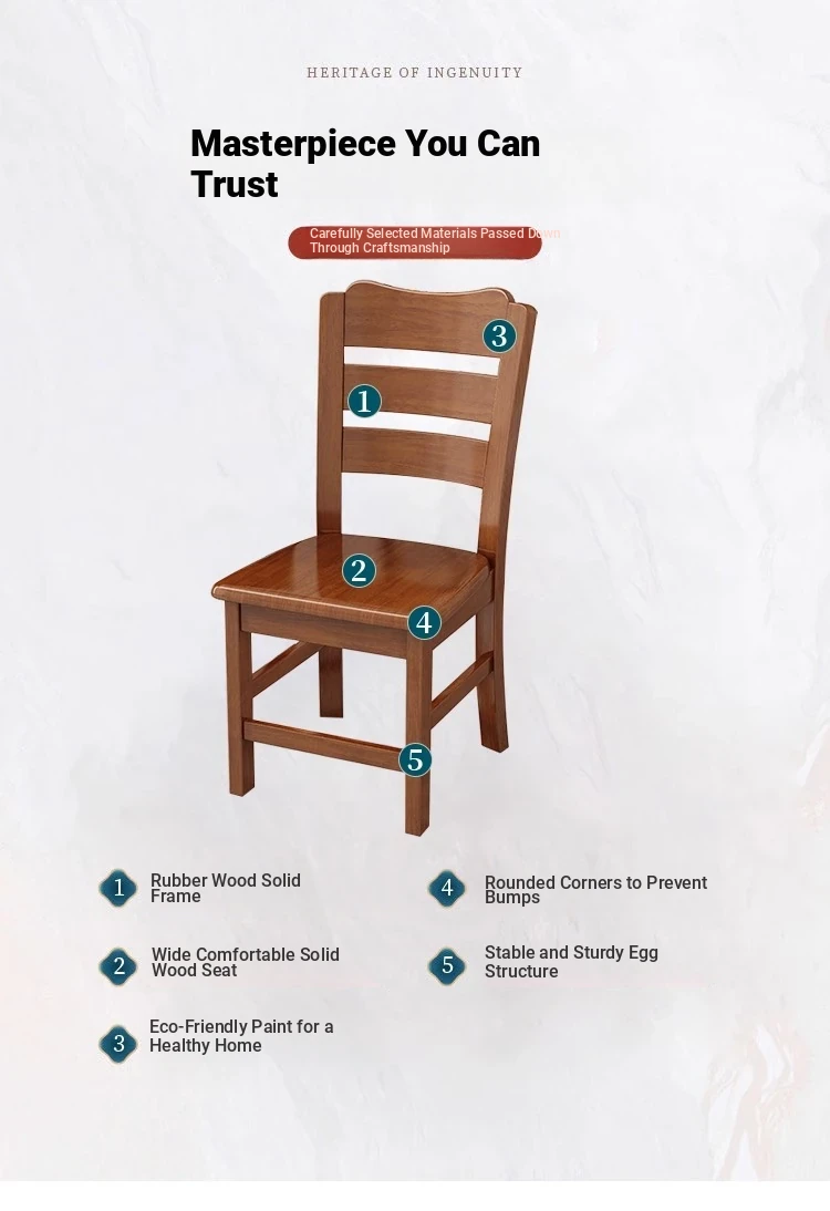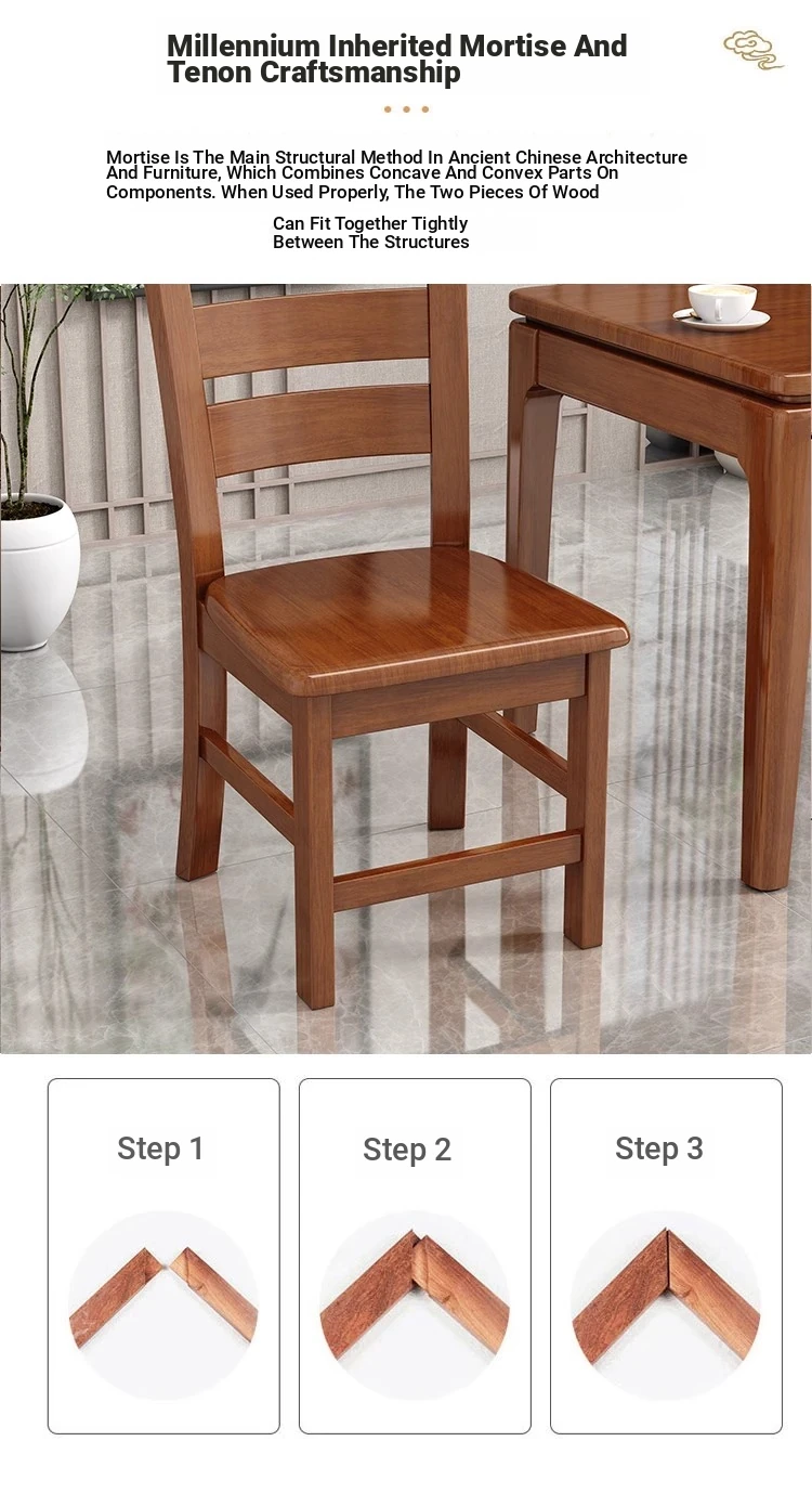 Solid Wood Dining Chair - Traditional Chinese Mortise and Tenon Design for Home, Restaurant, and Hotel Use - Stylish and Comfortable Backrest - No Assembly Required