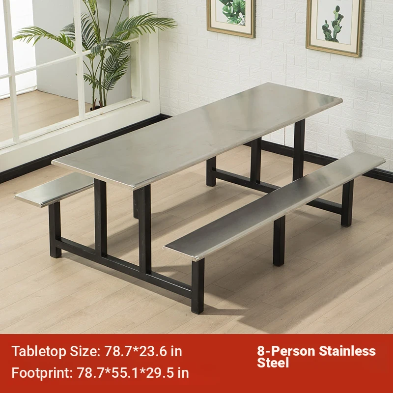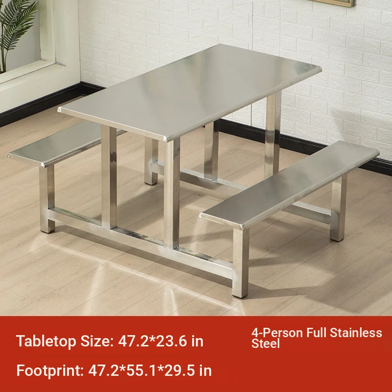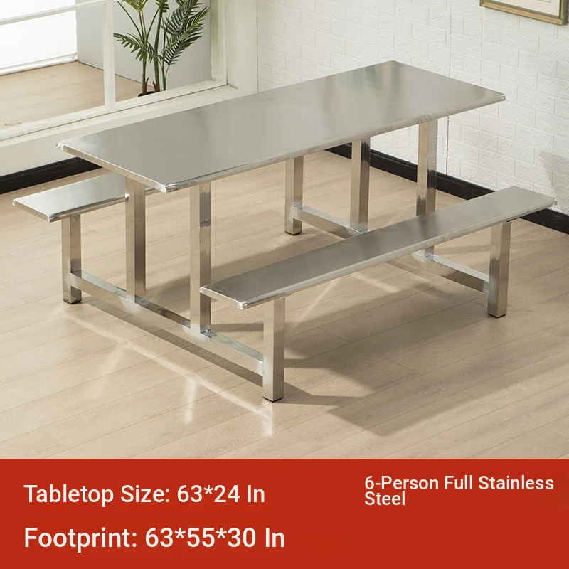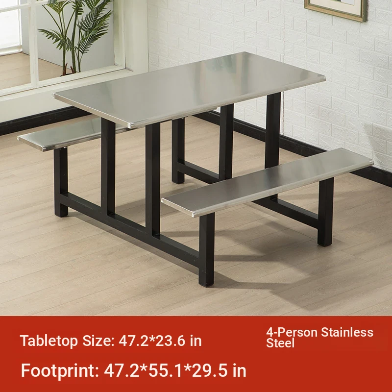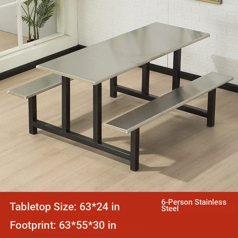 Stainless Steel Dining Table Set for Schools and Cafeterias - 4 to 6 Person Fast Food Table and Chair Combination for Employees and Students