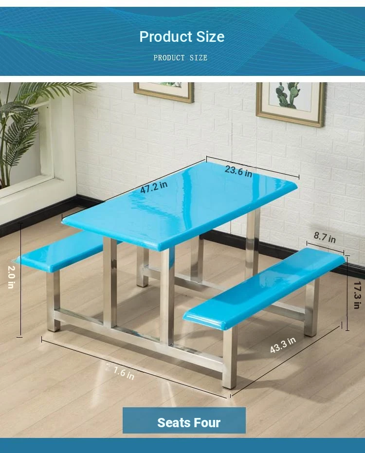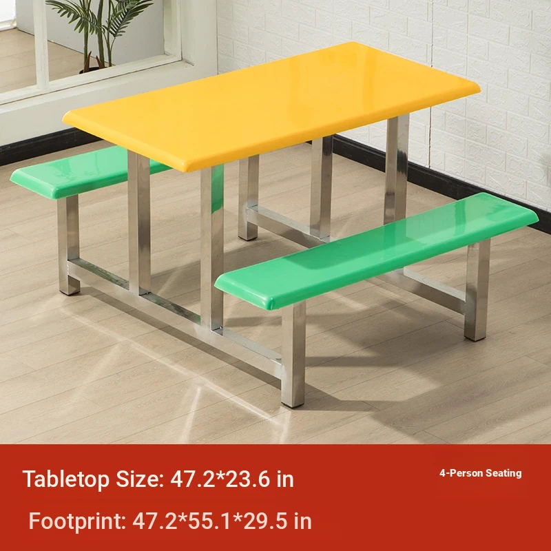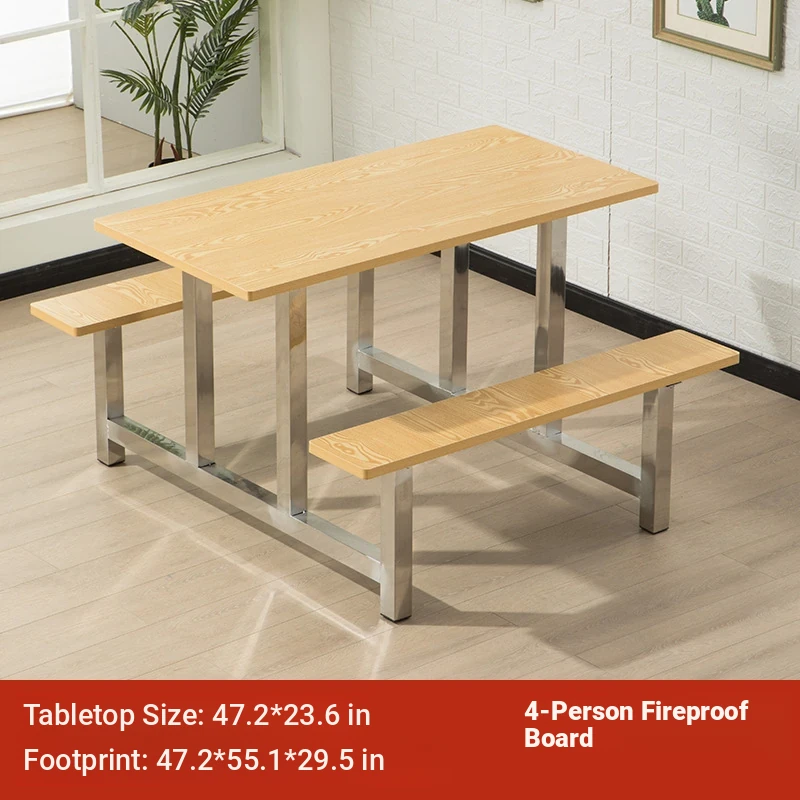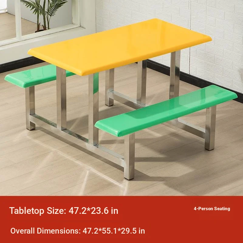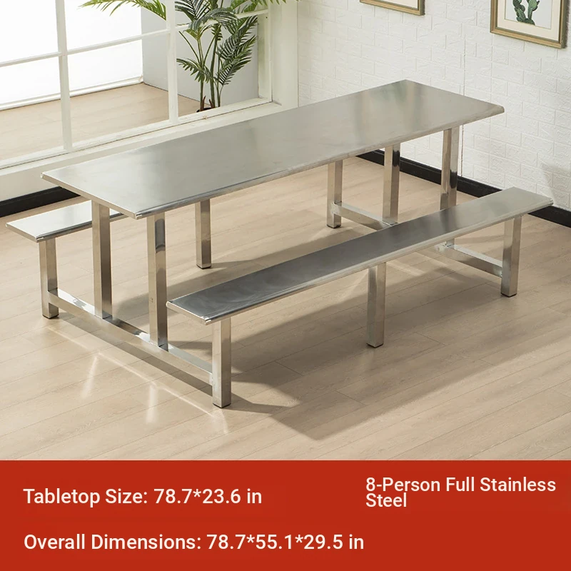 Stainless Steel Dining Table Set for Schools and Cafeterias - 4 to 6 Person Fast Food Table and Chair Combination for Employees and Students