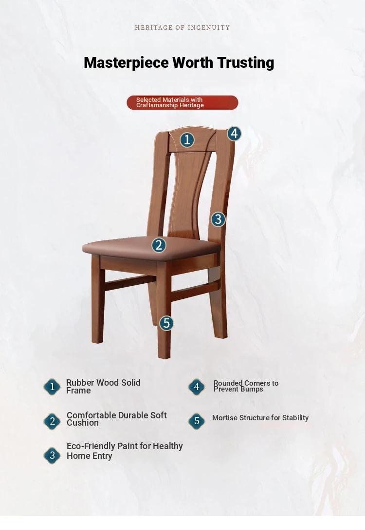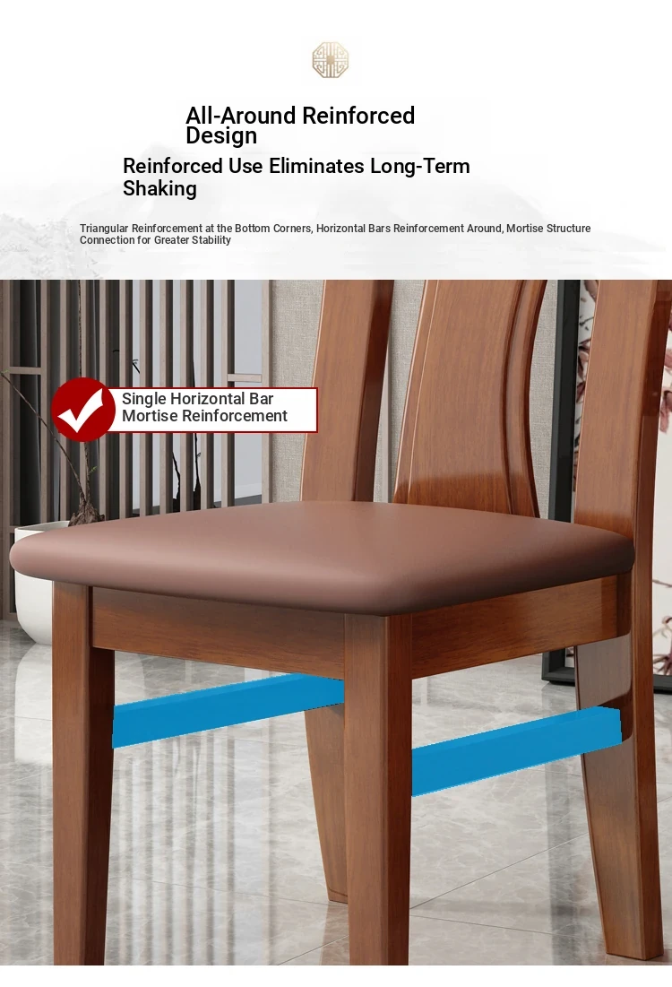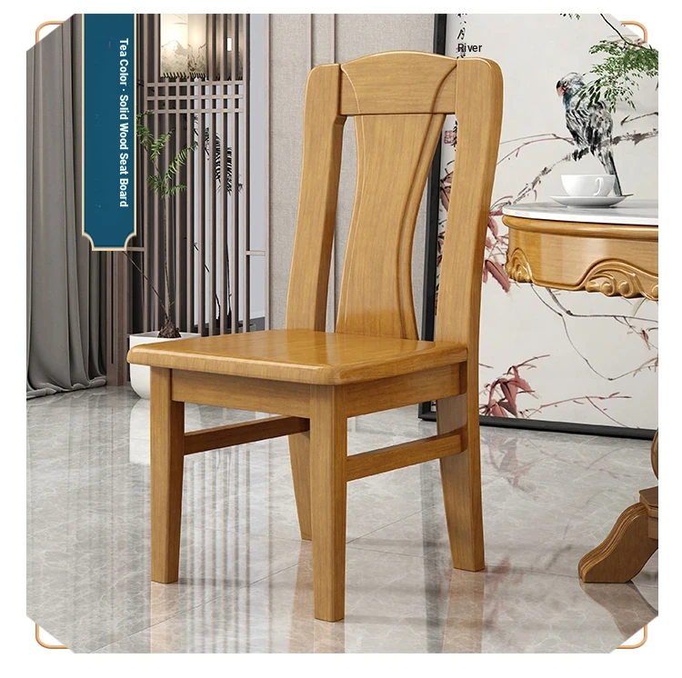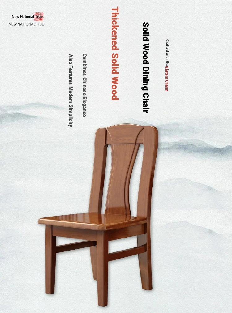 Thickened Solid Wood Dining Chair - Modern Chinese Style Reinforced Backrest Stool for Home Use, Perfect for Restaurants and Dining Tables