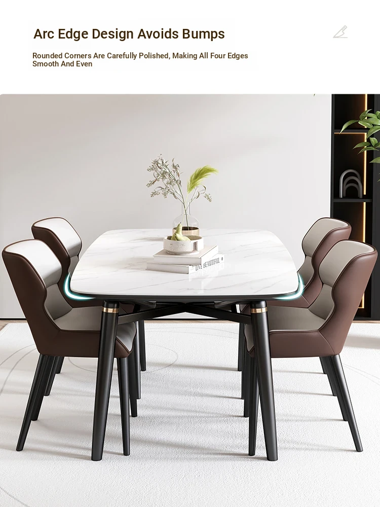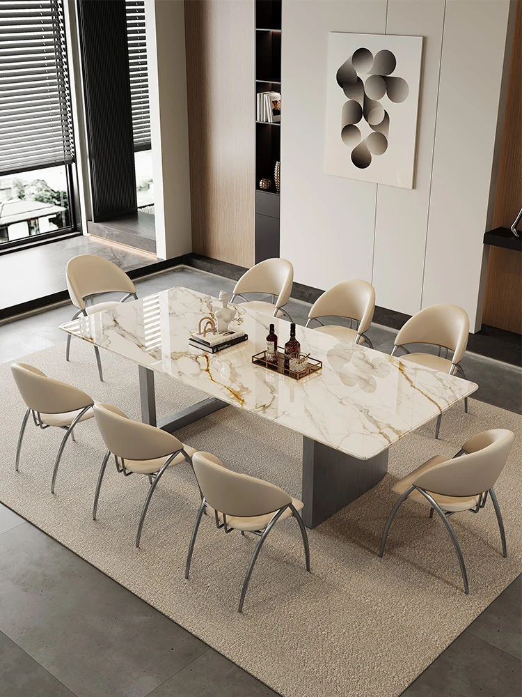 Elegant Rectangular Dining Table for Stylish Homes - Premium Quality Stone Surface, Perfect for Open Kitchens and Dining Rooms, Complete with Matching Chairs for a Luxurious Dining Experience.