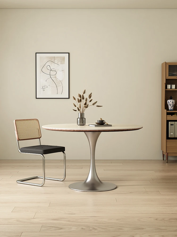 Modern Round Dining Table with Tulip Base - Compact Design for Small Spaces, Featuring Durable Stone Surface and Stainless Steel Legs - Perfect for Home and Vintage-Inspired Dining Rooms