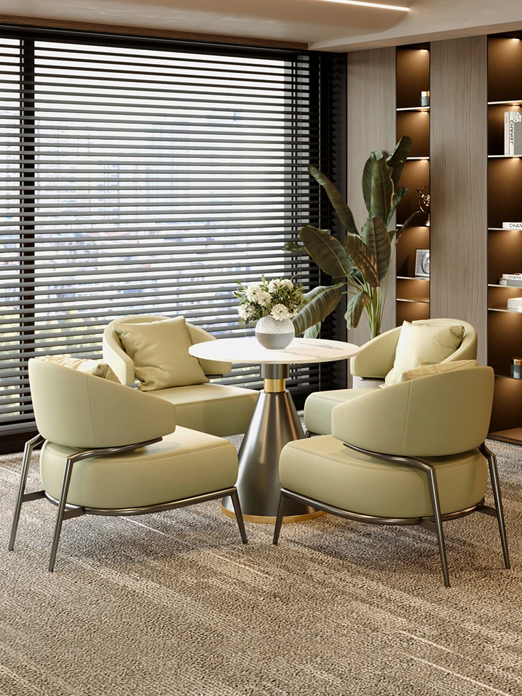 Nordic Style Office Reception Desk Set - Includes One Table and Four Chairs, Perfect for Hotel Lobbies, Sales Offices, and Showrooms - Stylish Single Sofa Chair and Table Combination for 4S Stores