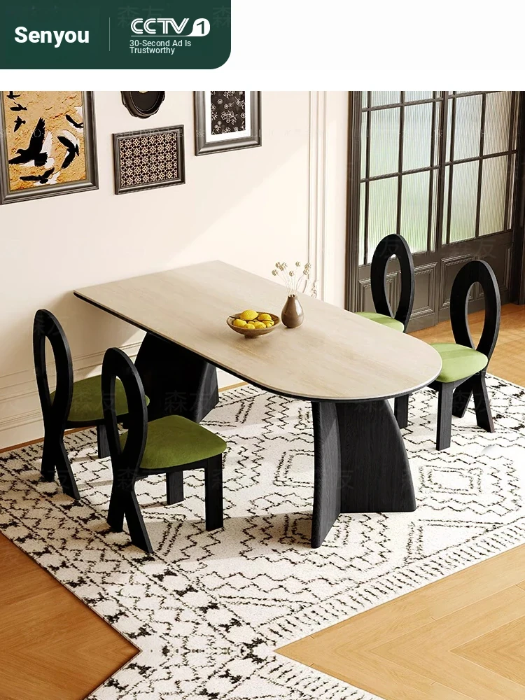 2025 New Arrival Solid Wood Rock Plate Dining Table - Stylish and Space-Saving Round Table Set for Small Homes, Perfect for Living Room and Dining Area