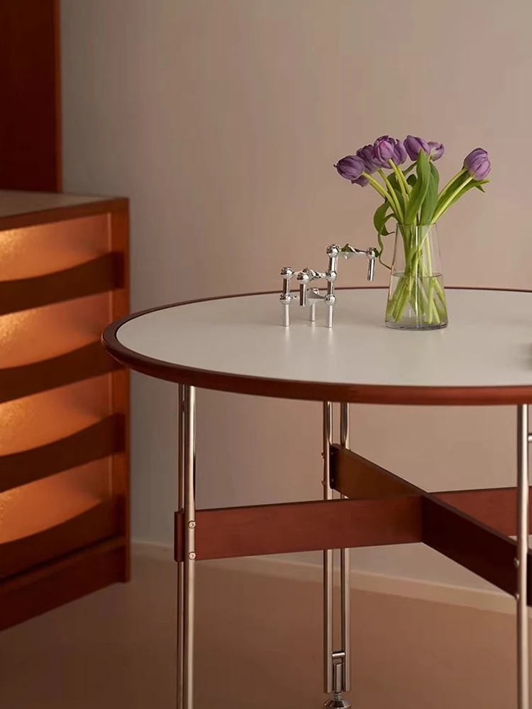 Vintage Minimalist Round Dining Table with Solid Wood Top and Stainless Steel Legs - Ideal for Small Spaces and Modern Homes