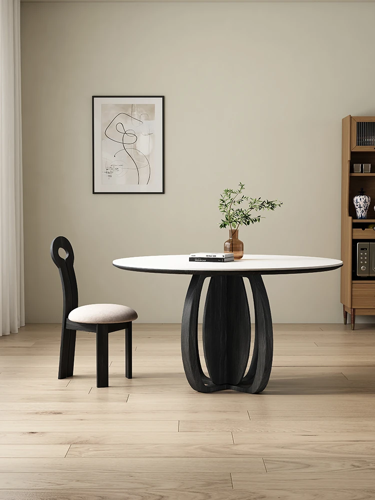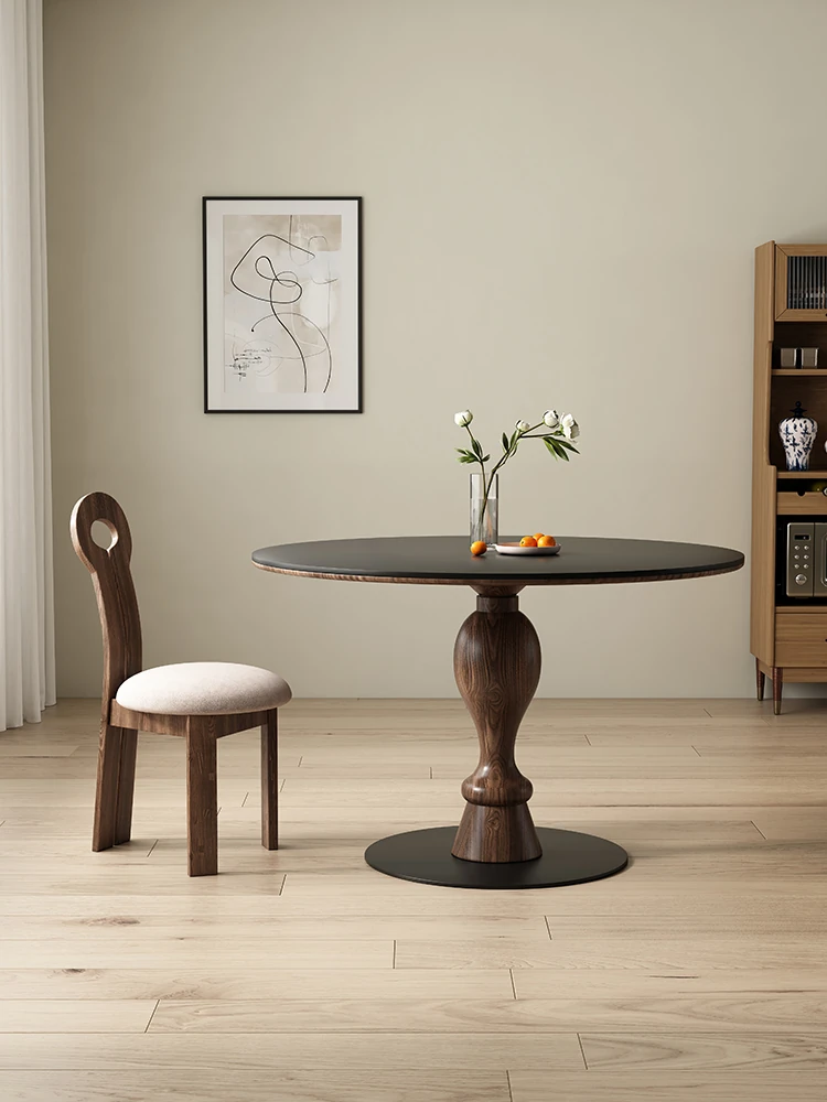 Tuyuan Designer Vintage Solid Wood Round Dining Table - Minimalist Pure Color Delifeng Rock Plate Table for Small Homes