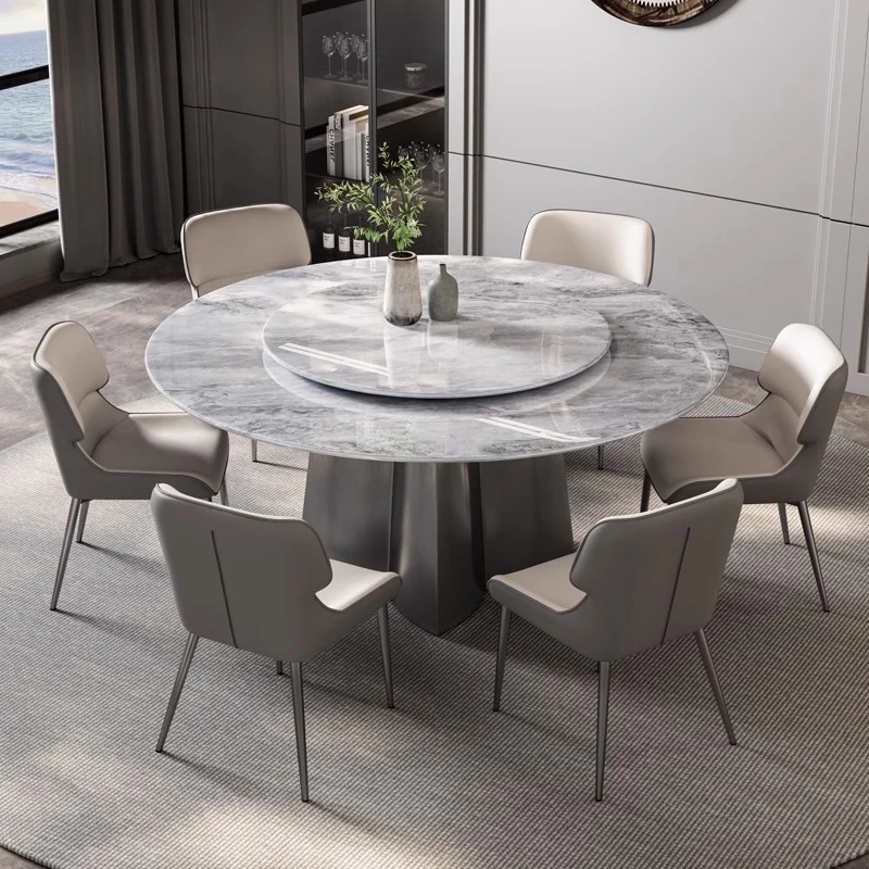 4S Dealership Reception Furniture Set - Stylish Round Table and Chairs for Business Meetings and Relaxation - Premium Dining Table with Rock Slab Finish
