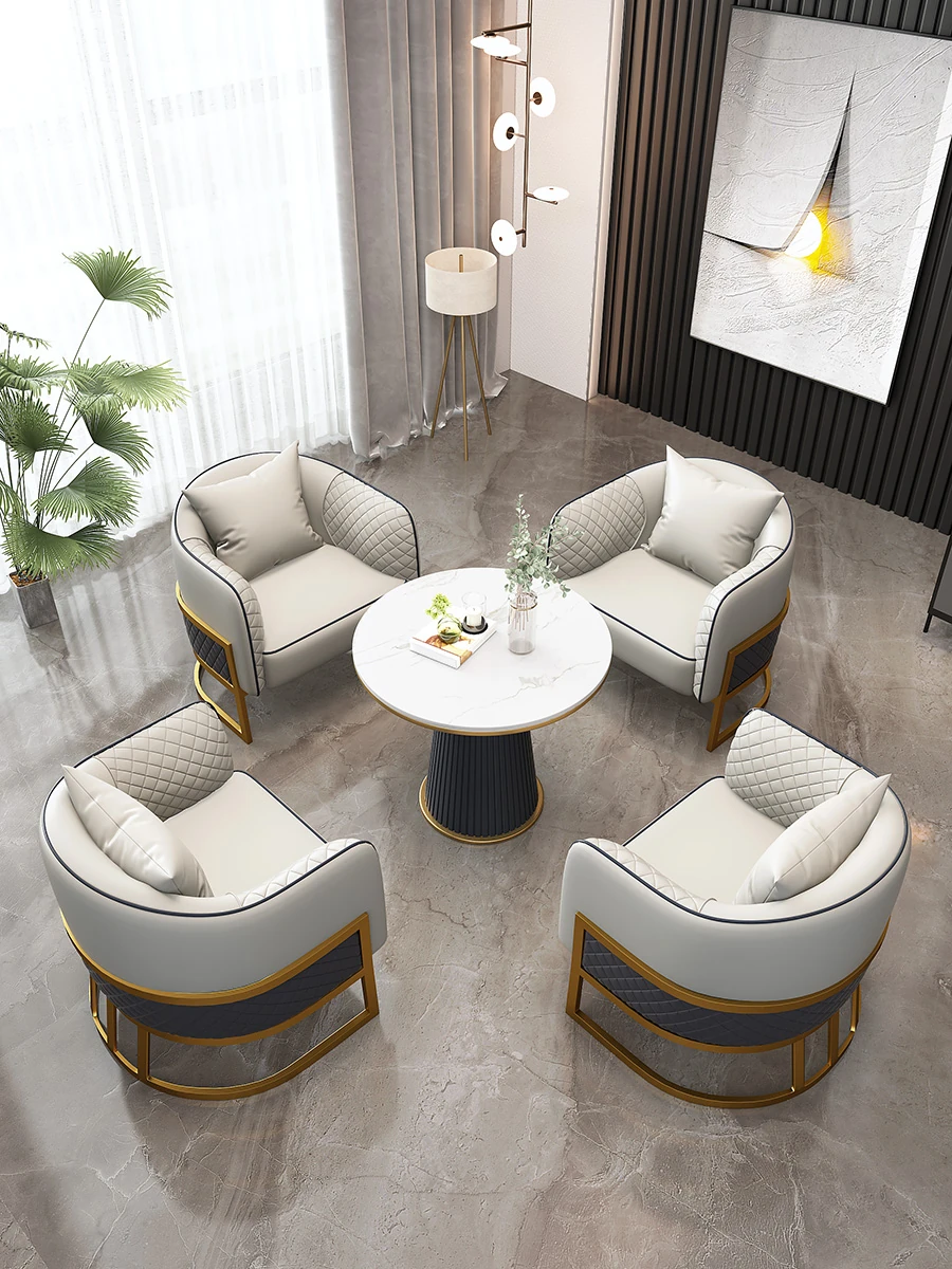 Scandinavian Style Business Lounge Table and Chair Set - Minimalist Round Table for Tea Shops and Reception Areas, Perfect for Relaxed Meetings and Conversations