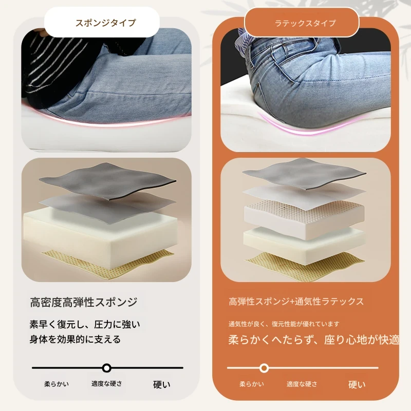 ↓スポンジタイプ❤️ラテックスタイプ❤️お好みの座り心地をお選びください↓