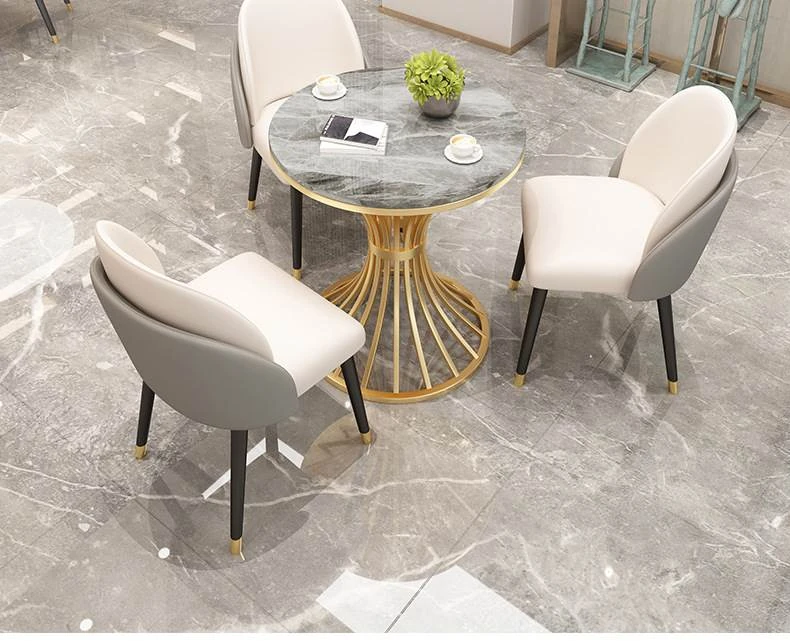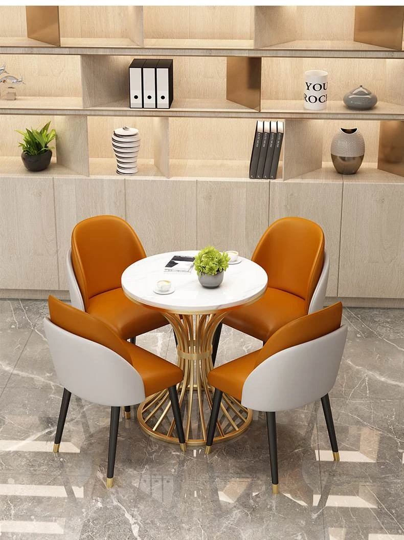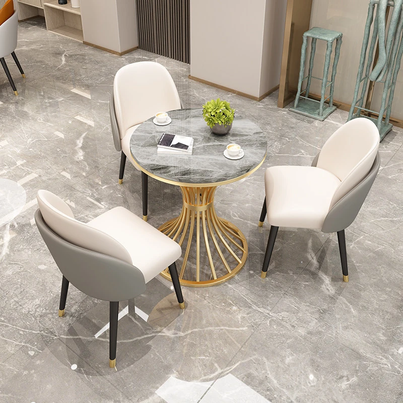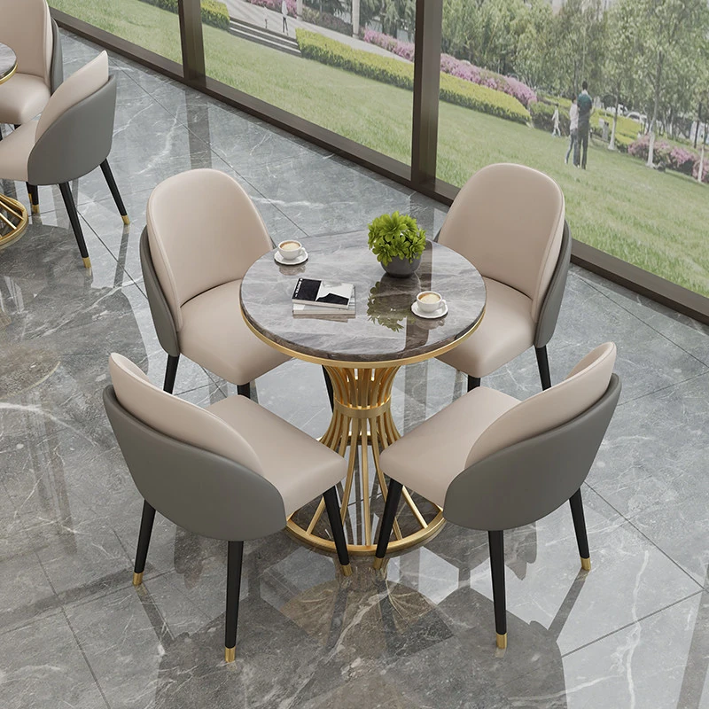 4S店専用!おしゃれで機能的な接客用テーブル&チェアセット - リラックスできる小丸テーブル商業用デザイン、会議や食事に最適な岩板テーブル!お客様を心地よくお迎えします。