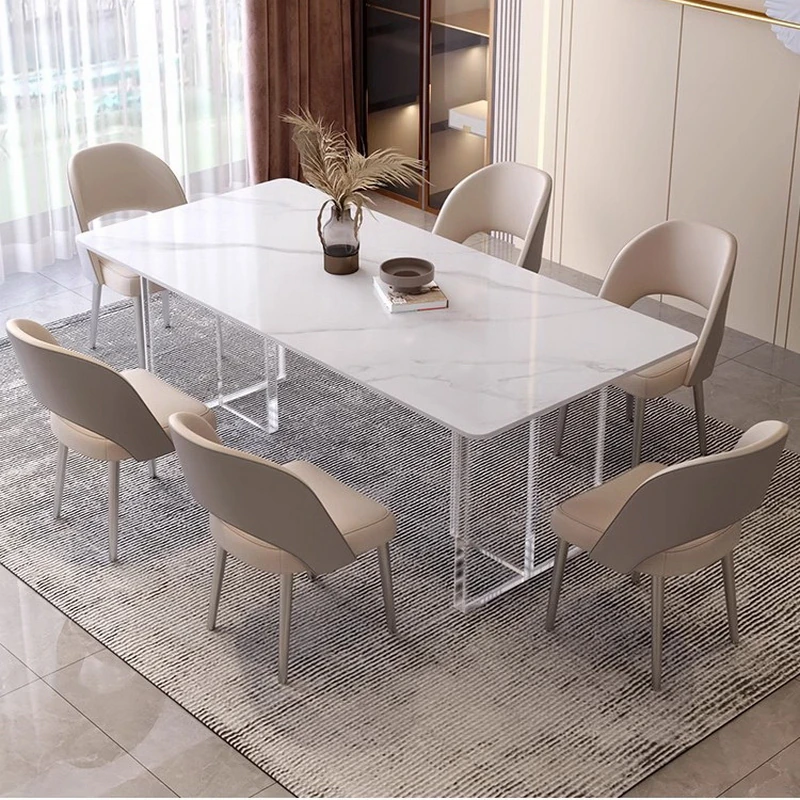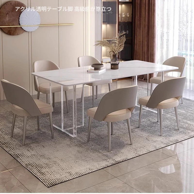 アクリル浮遊岩板ダイニングテーブル|家庭用デザイナー創造的ミニマリスト透明アイランドテーブル&チェアセット|おしゃれでスタイリッシュな空間を演出!