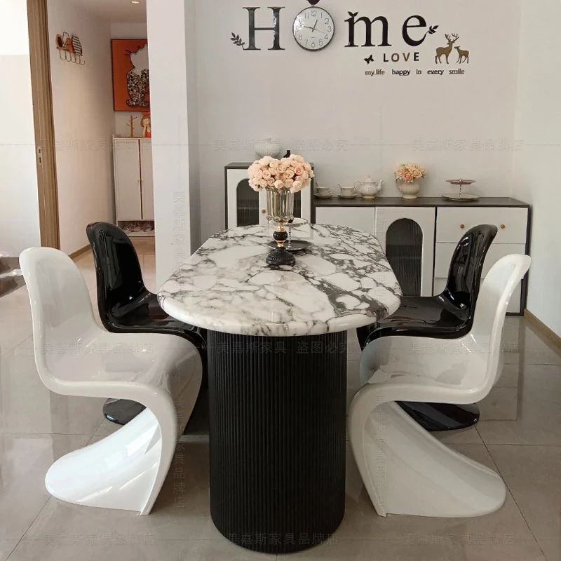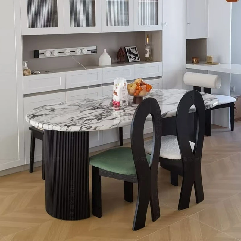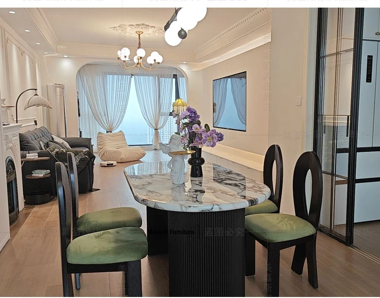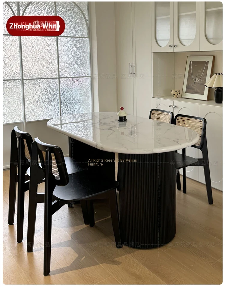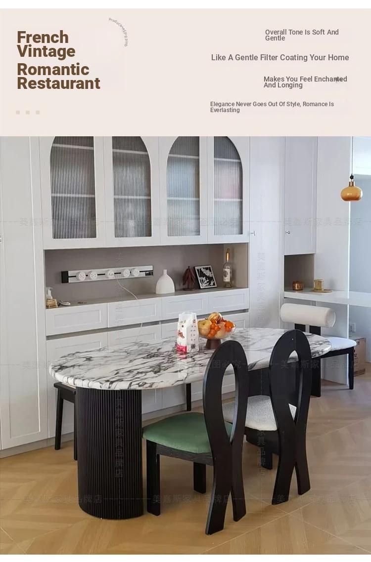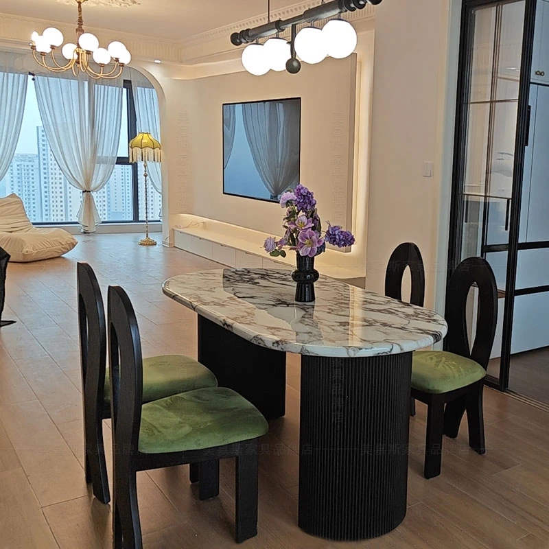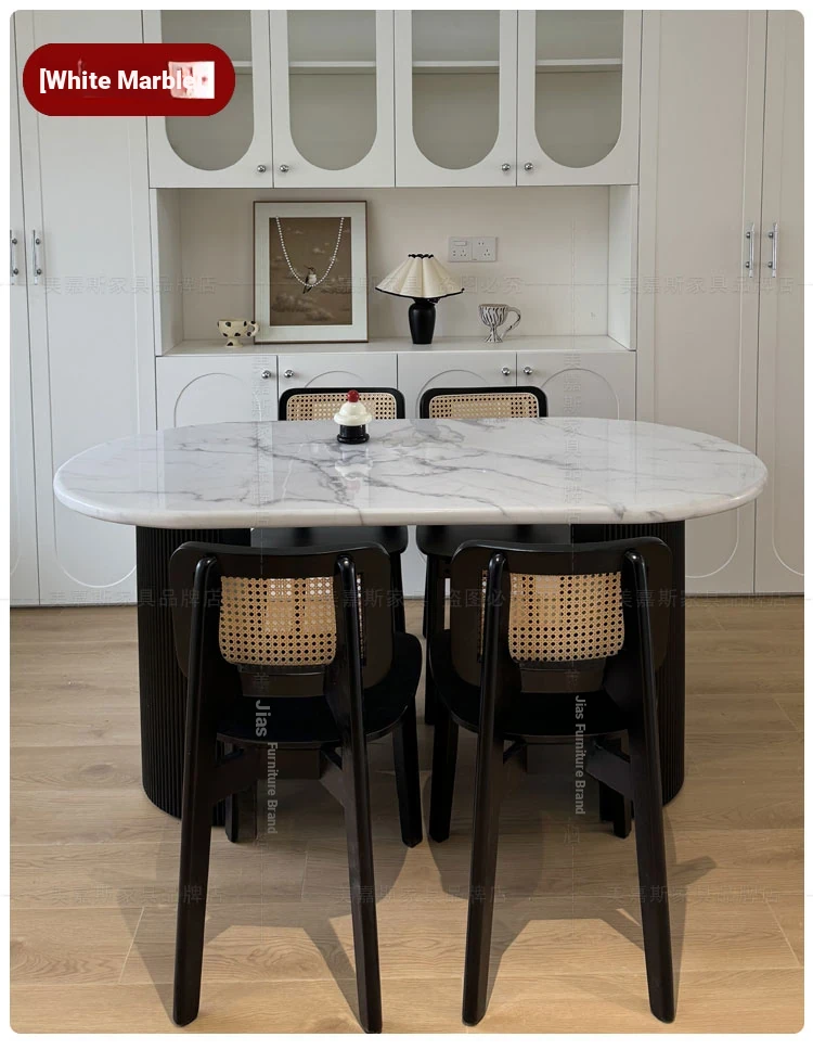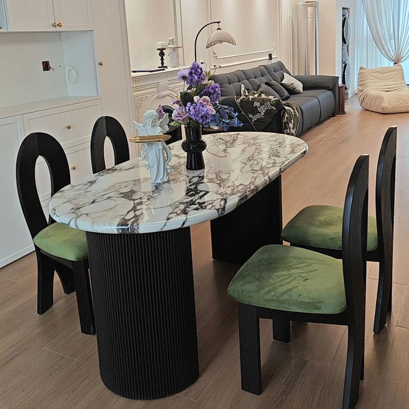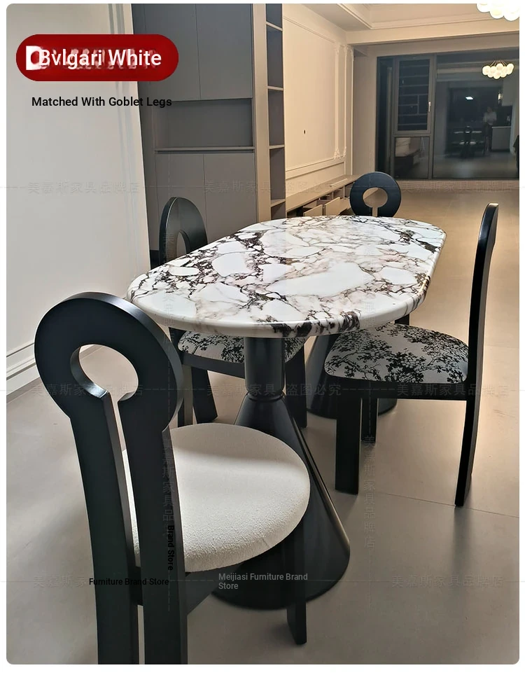 Bvlgari Marble Dining Table - Elegant French Vintage Design, Modern Minimalism for Small Spaces, Oval Shape Perfect for Cozy Homes