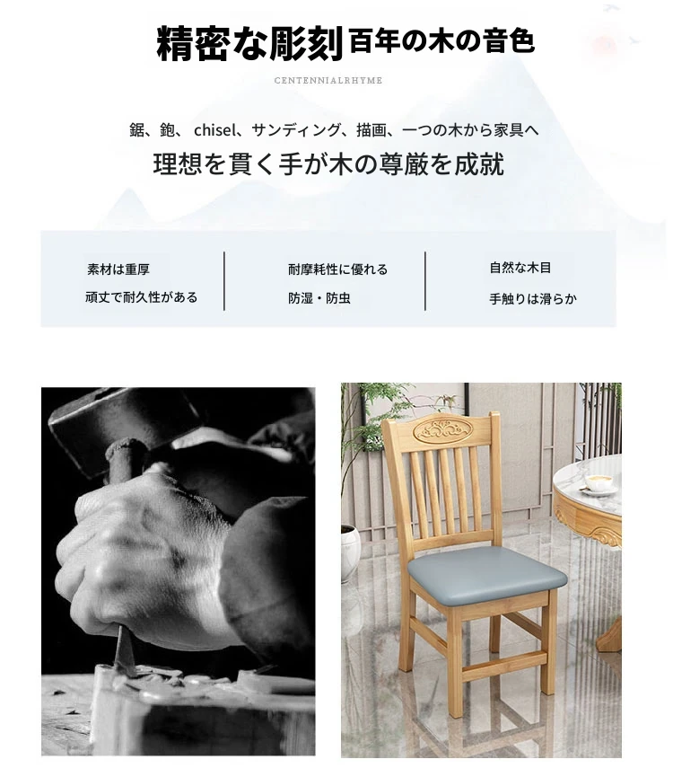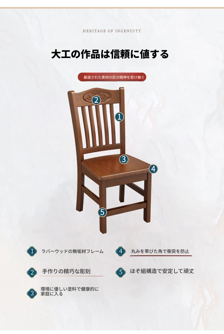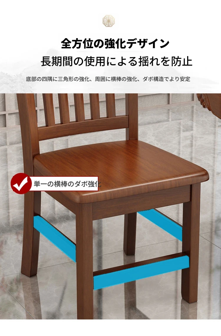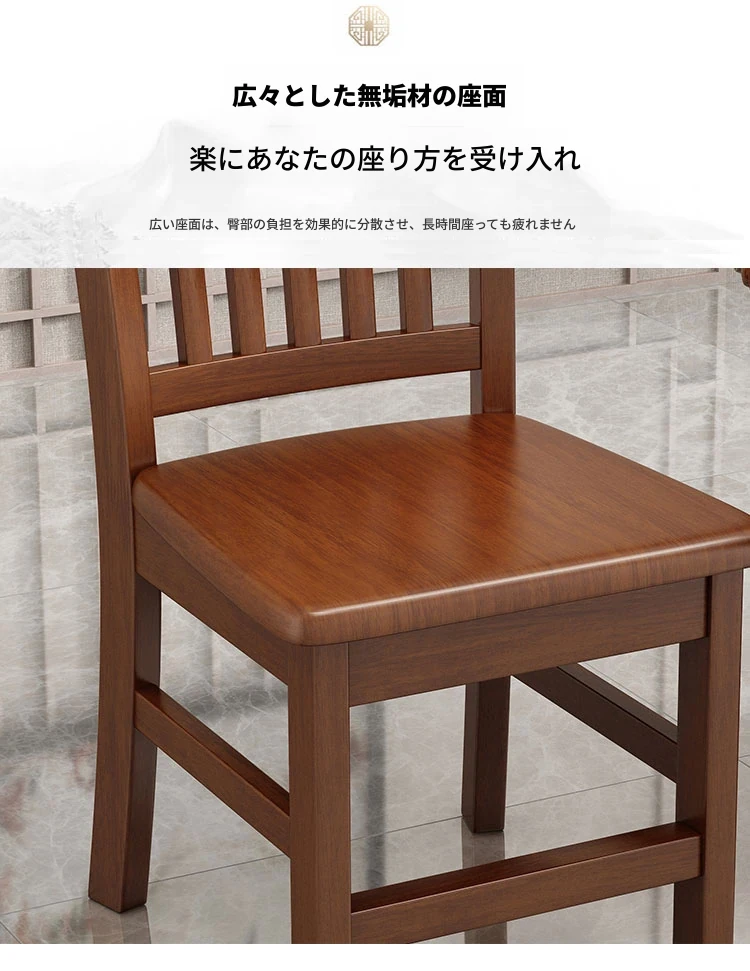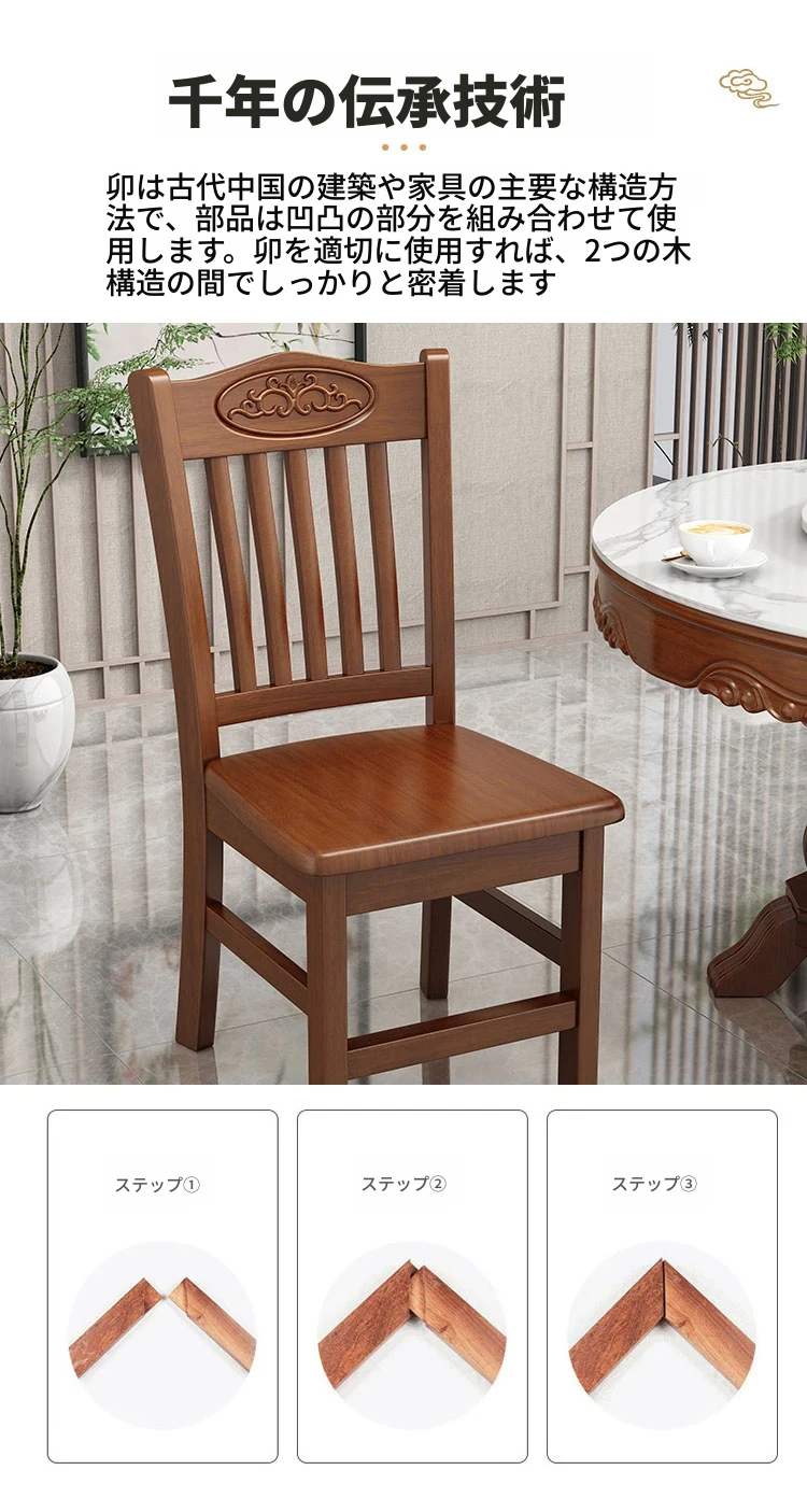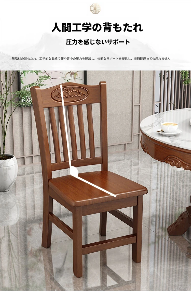 組み立て不要の無垢材ダイニングチェア|中華スタイルの厚みのある榫卯構造|レストランや家庭に最適な背もたれ付き|優雅な食卓を演出する高品質チェア