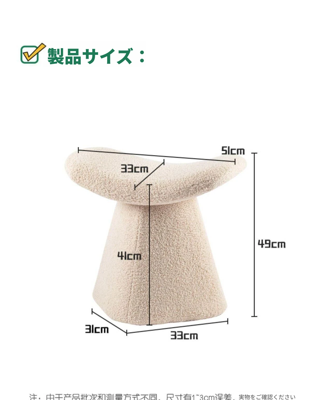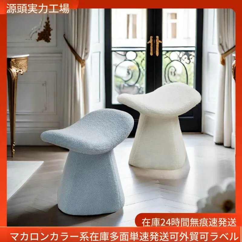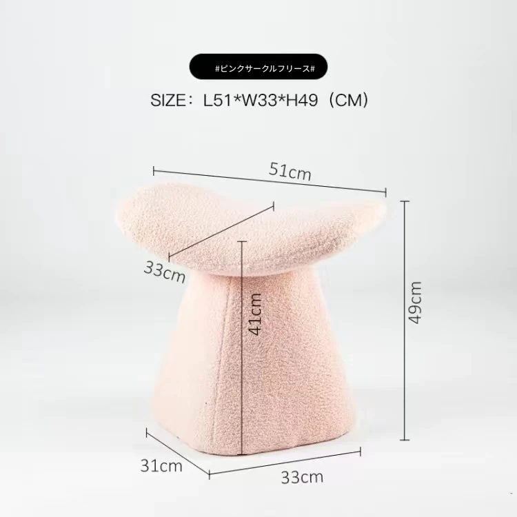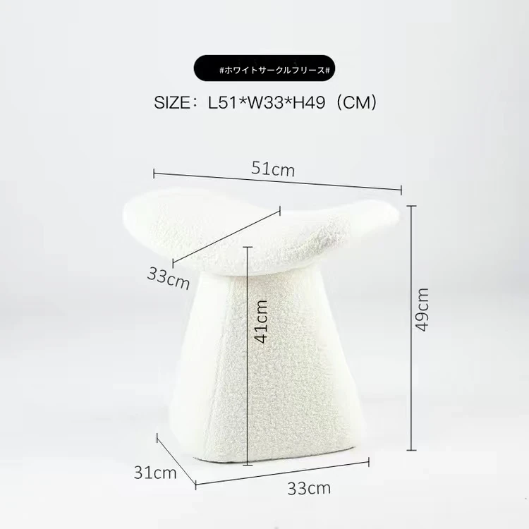 ふわふわのラムファー化粧台椅子|快適な長時間座りに最適|おしゃれな女性向けのローベンチ|寝室や玄関にぴったりの人気アイテム!