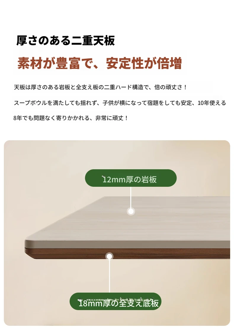 【全新アップグレード厚さ30MMの岩板+無垢材全底板】