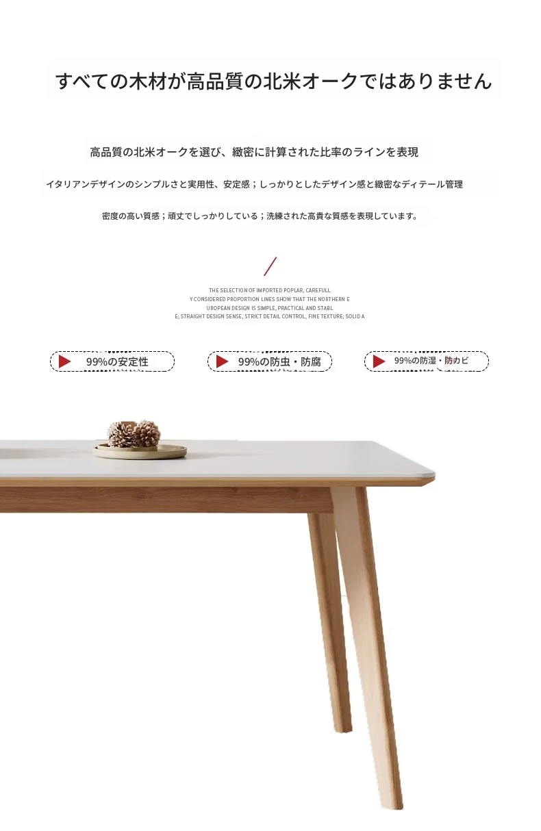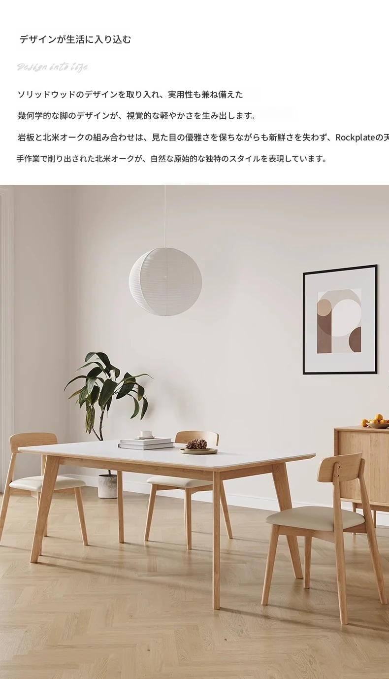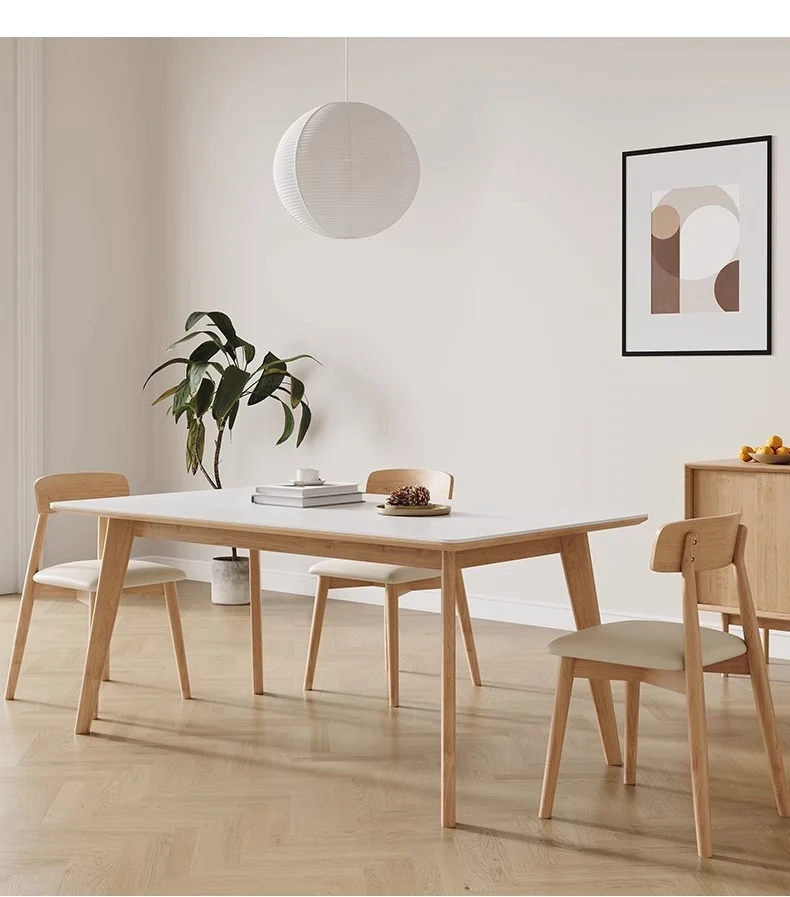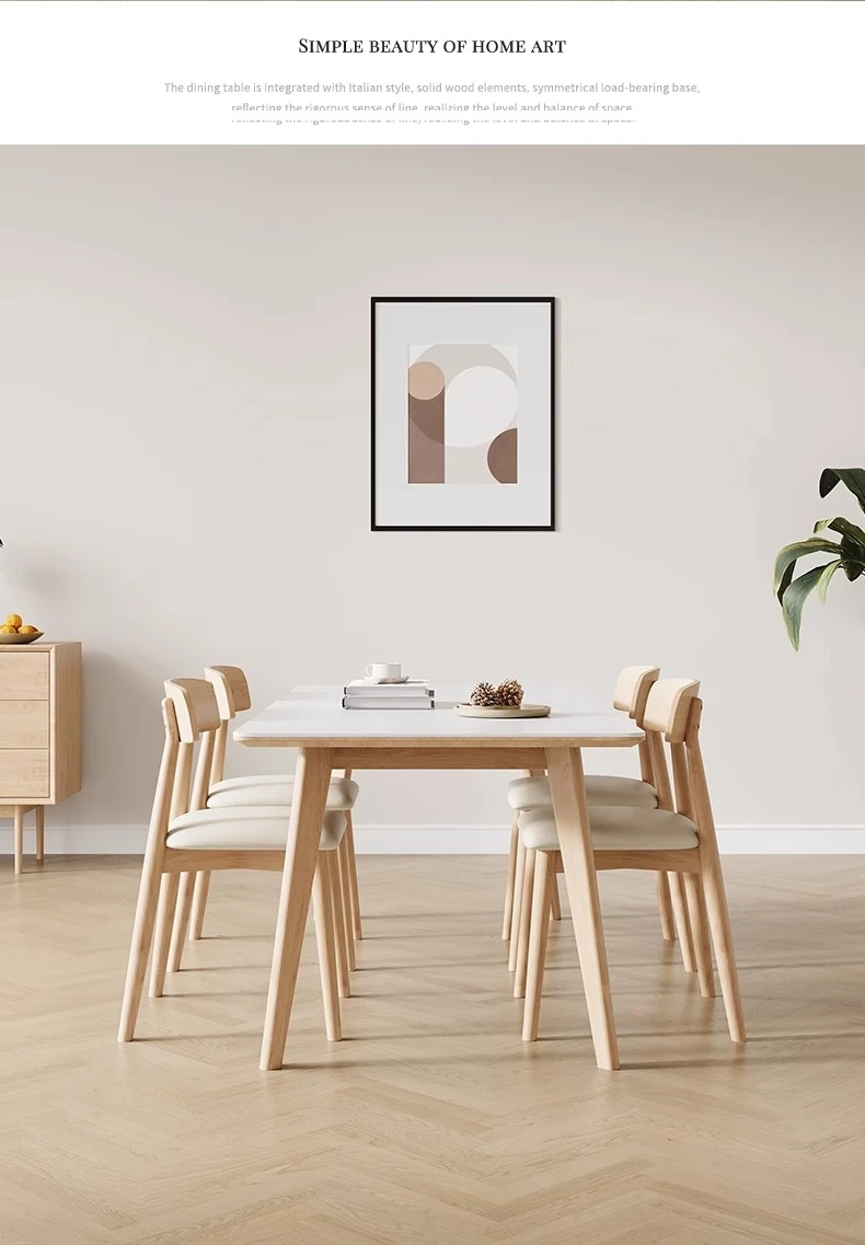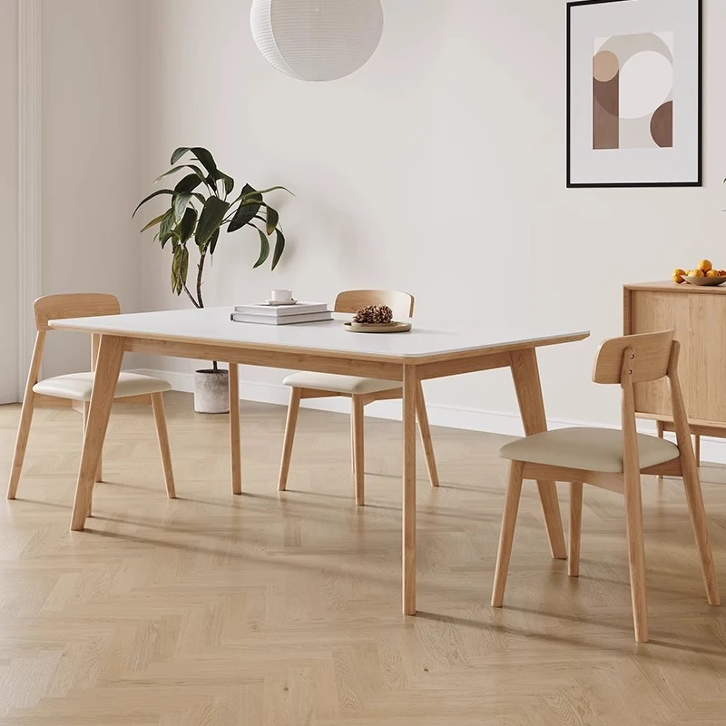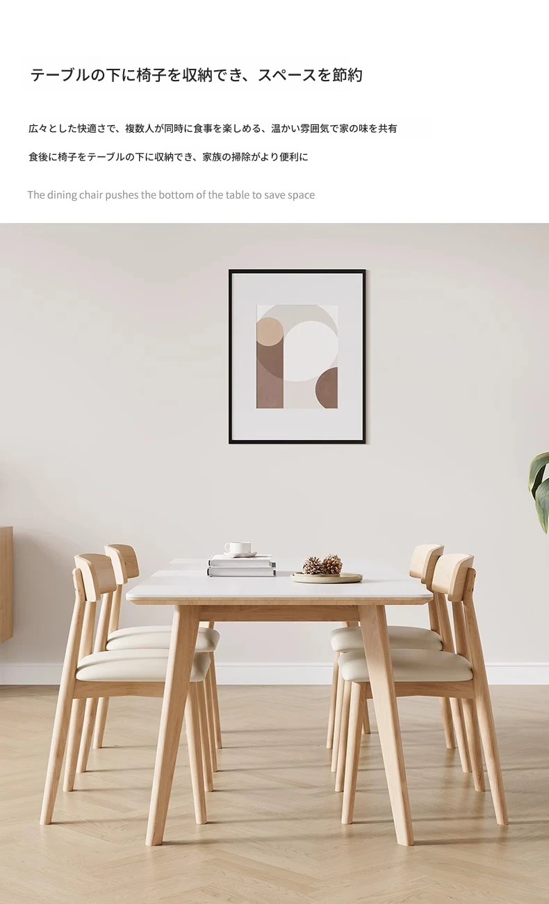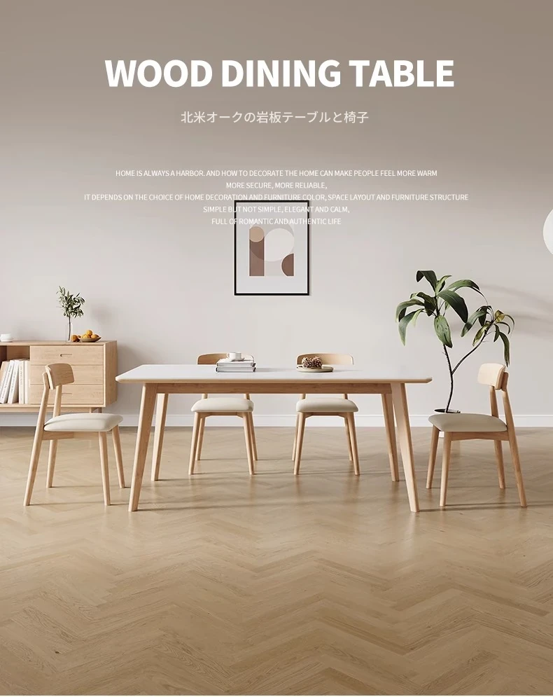 クリーム風の無垢ホワイトストーンテーブル 北欧スタイルの家庭用小型オーク長方形ダイニングテーブル&チェアセット。洗練されたデザインで、おしゃれな食卓を演出します!