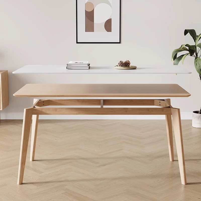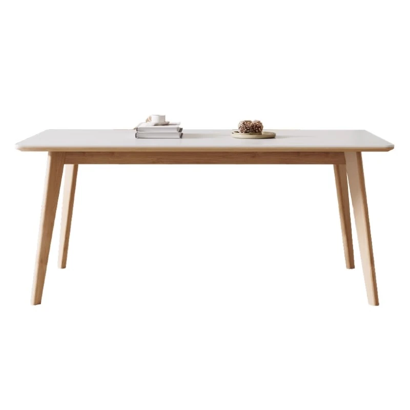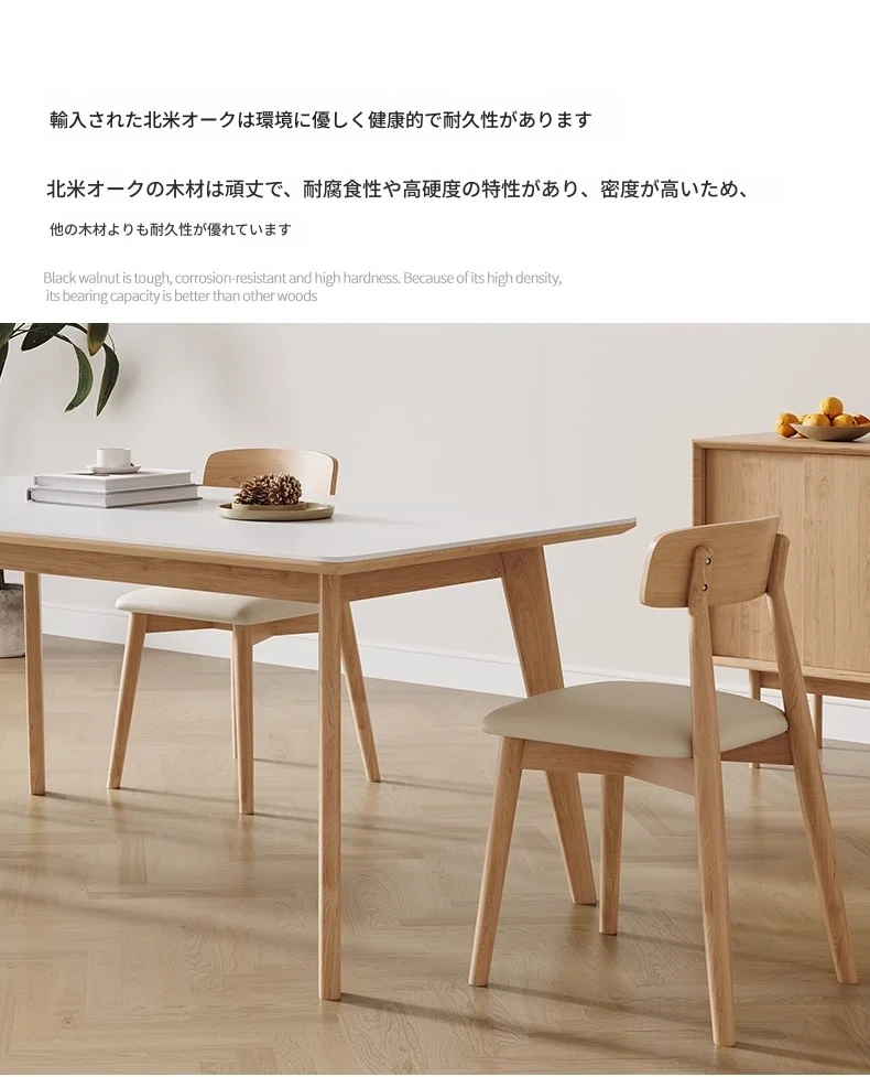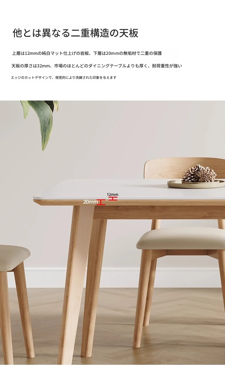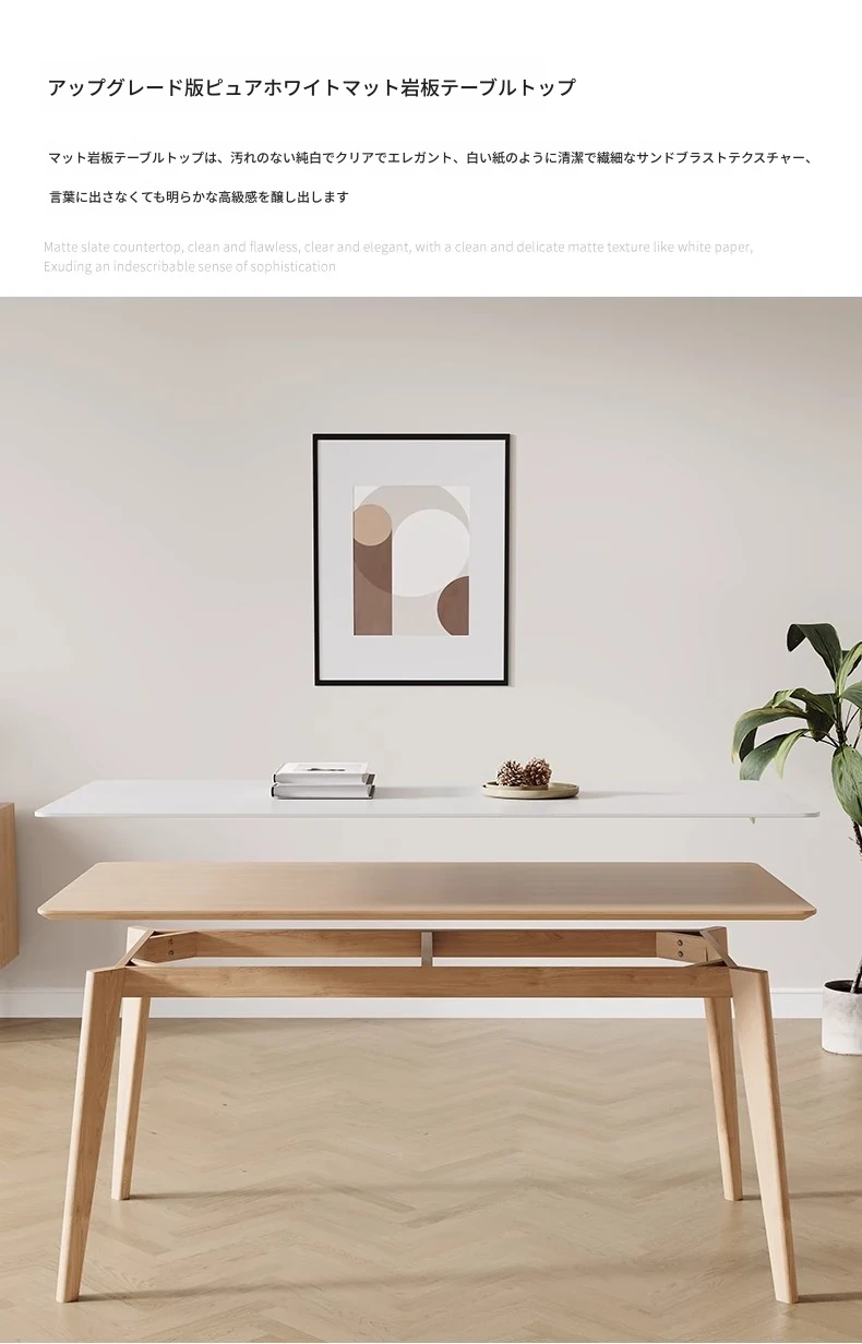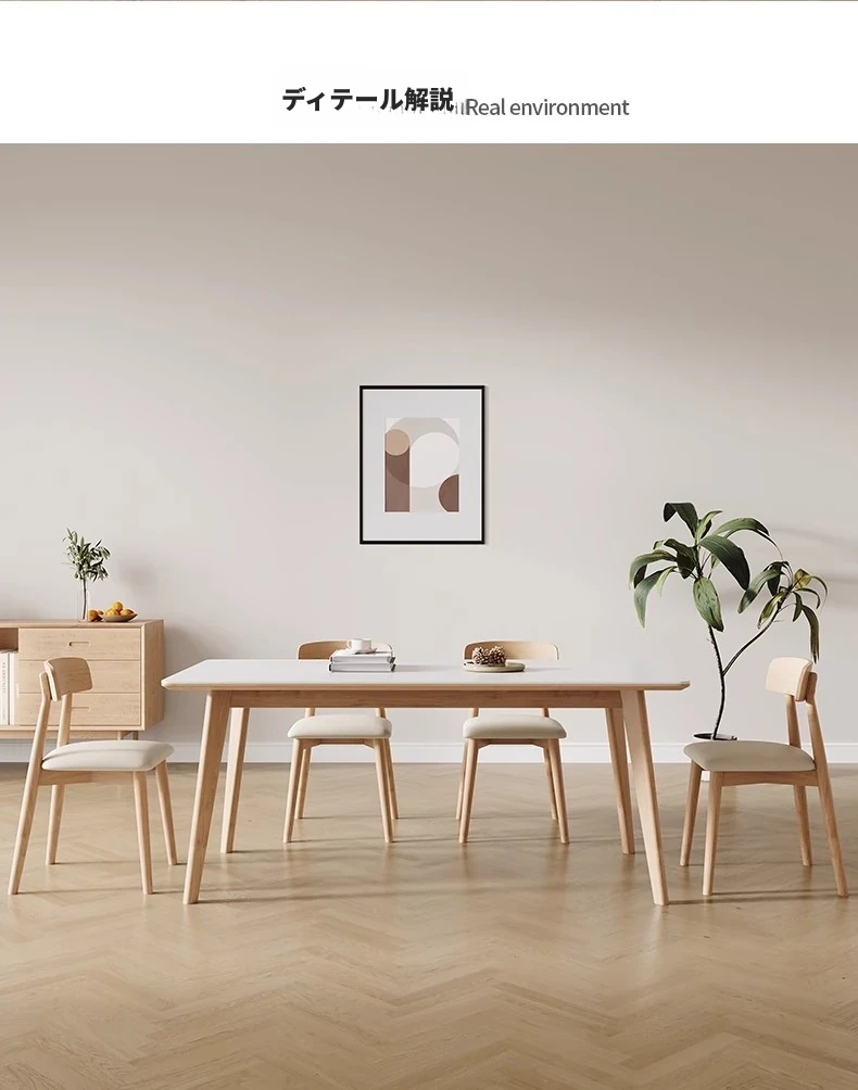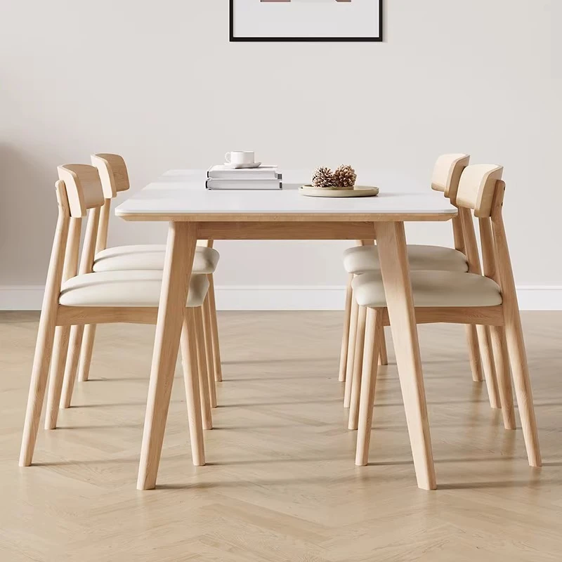 クリーム風の無垢ホワイトストーンテーブル 北欧スタイルの家庭用小型オーク長方形ダイニングテーブル&チェアセット。洗練されたデザインで、おしゃれな食卓を演出します!
