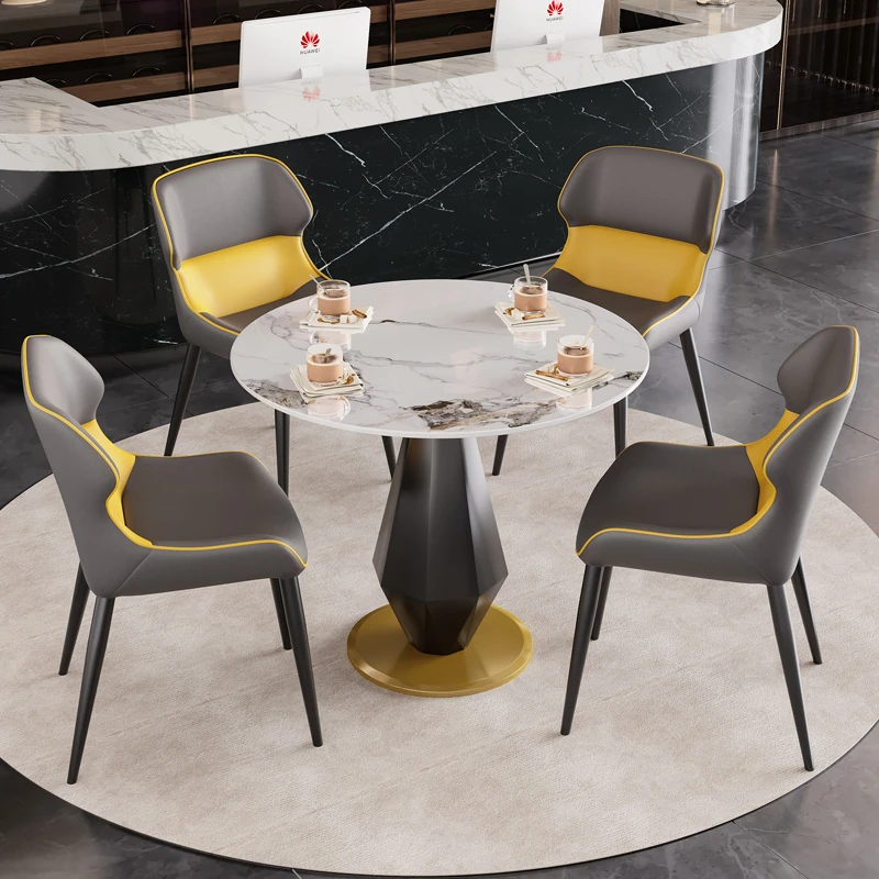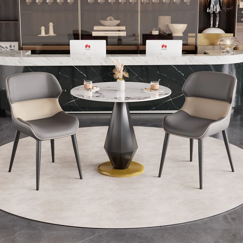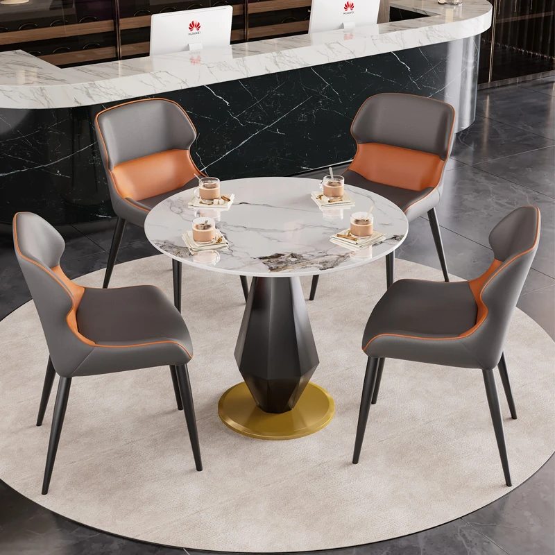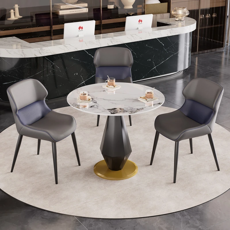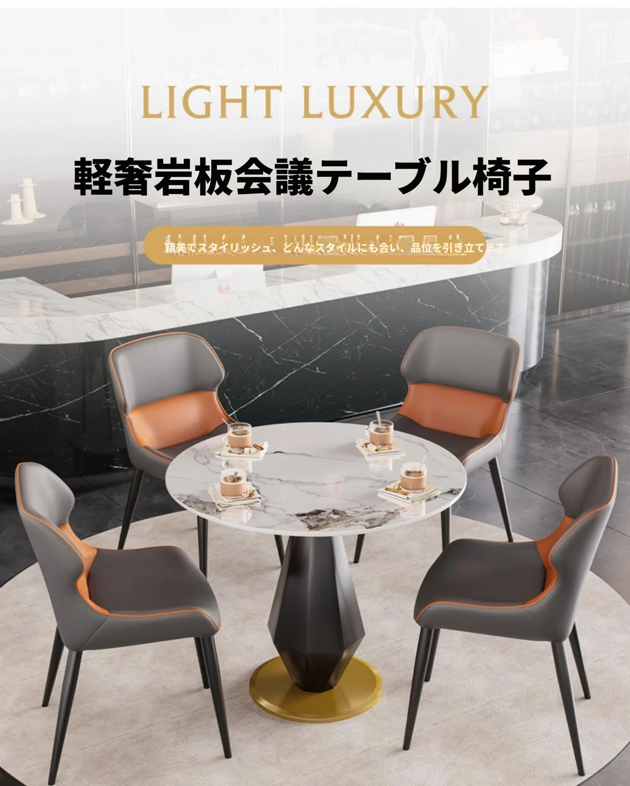 ラグジュアリーな接待用テーブル&チェアセット|一卓四椅子|販売所のリラックスエリアに最適|ビジネスミーティングにぴったりな小型ラウンドテーブル|高級感あふれるデザインでお客様をお迎えします!
