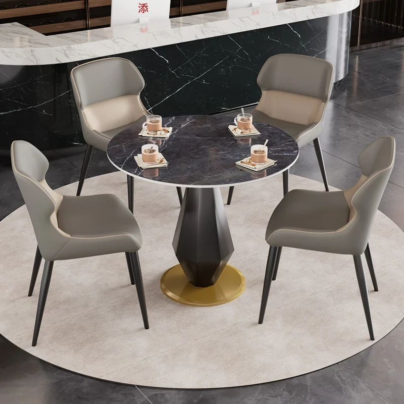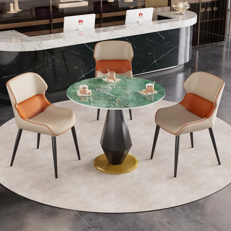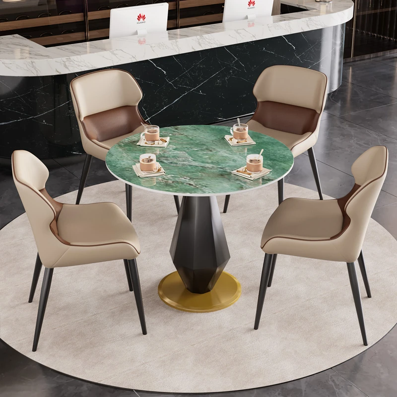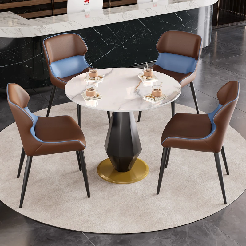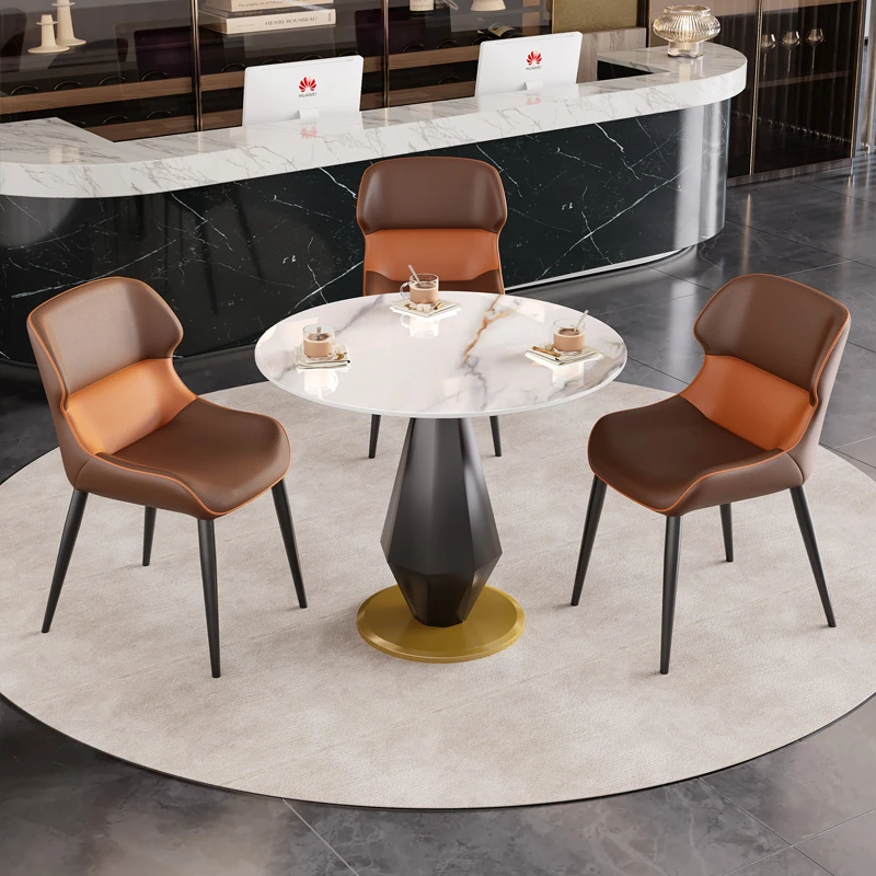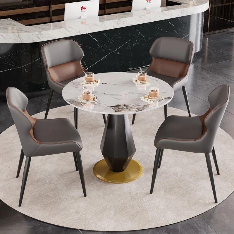 ラグジュアリーな接待用テーブル&チェアセット|一卓四椅子|販売所のリラックスエリアに最適|ビジネスミーティングにぴったりな小型ラウンドテーブル|高級感あふれるデザインでお客様をお迎えします!