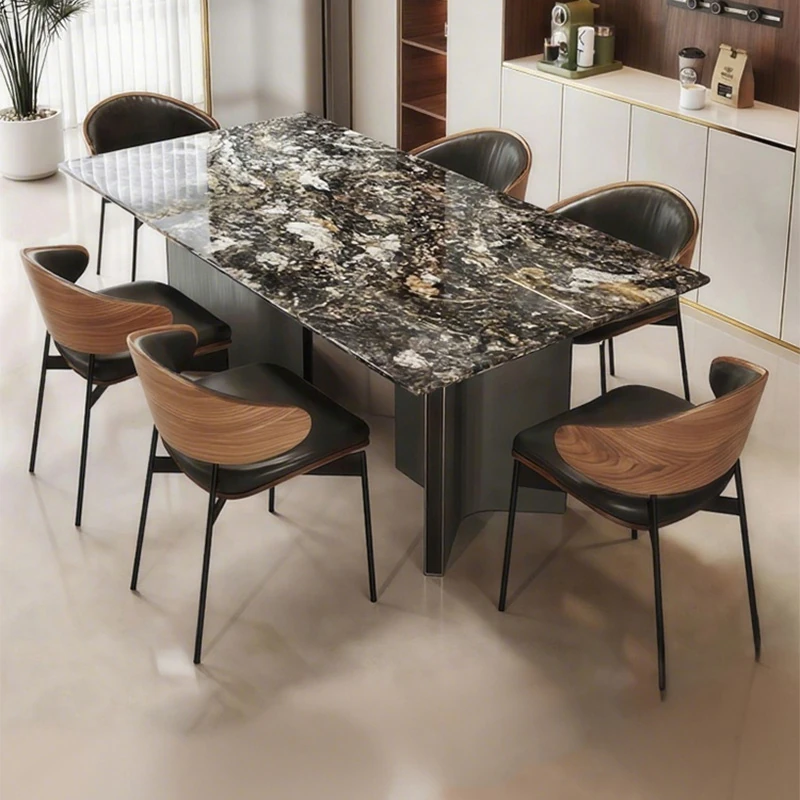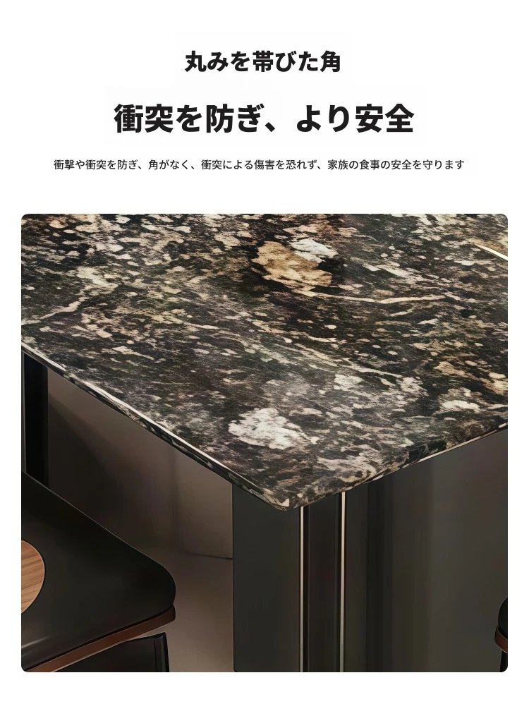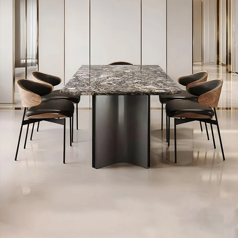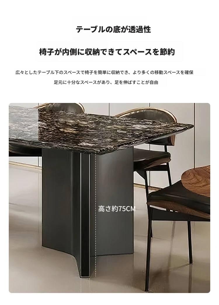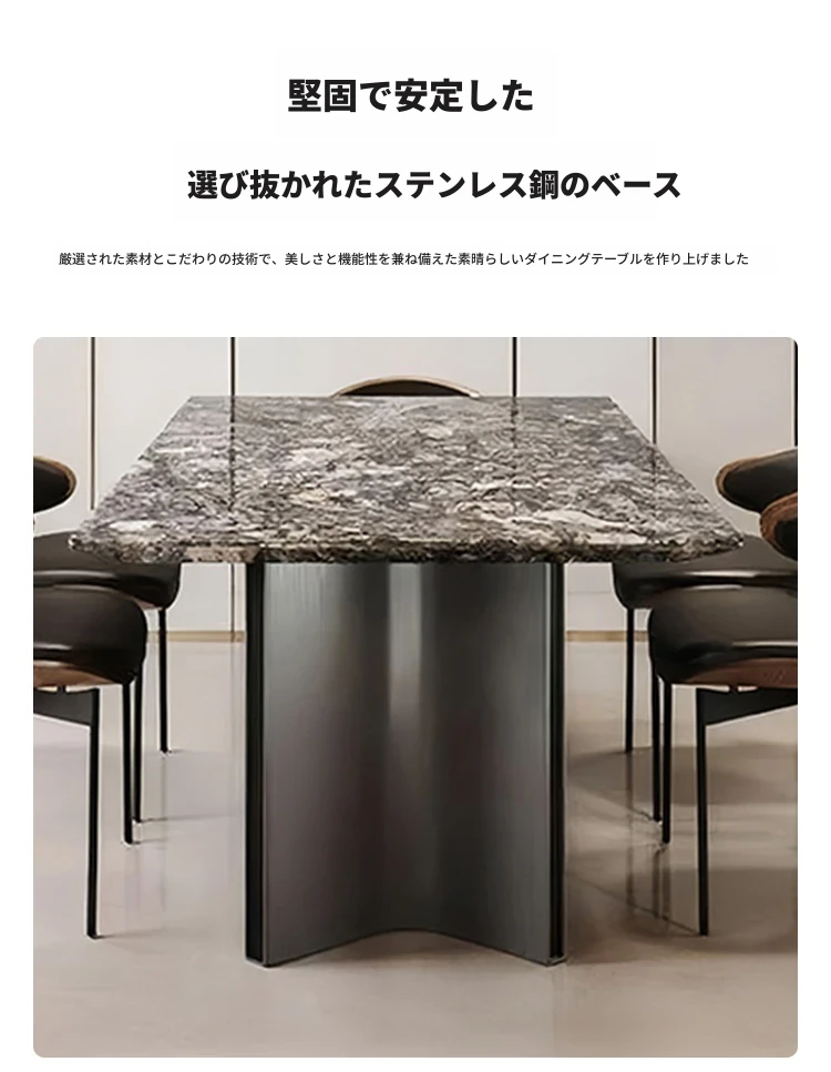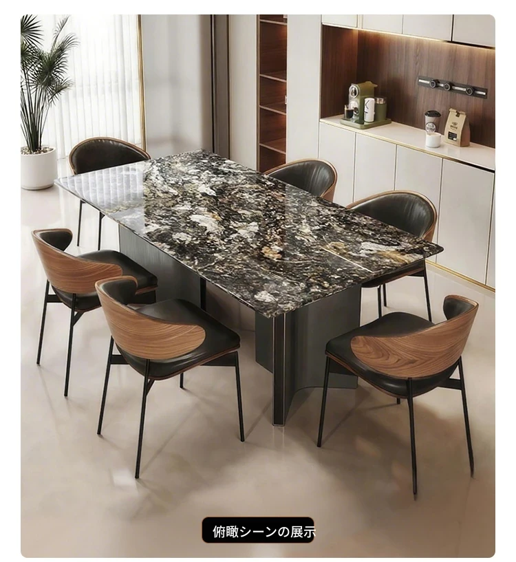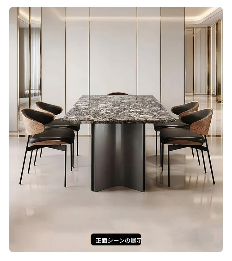 高級感溢れるモダンな長方形ダイニングテーブルセット - スタイリッシュな小型住宅にぴったりの贅沢な石製テーブルと椅子の組み合わせ!