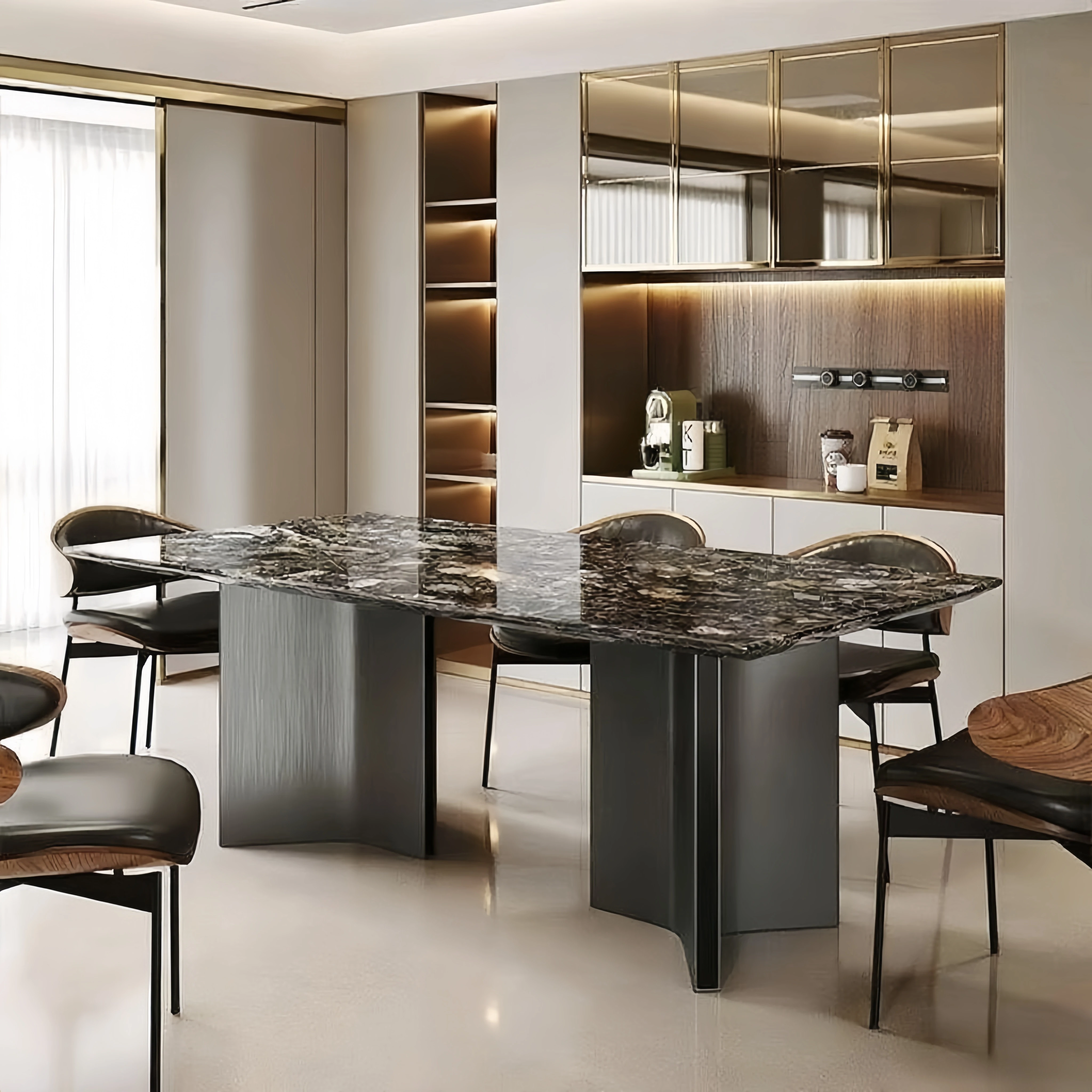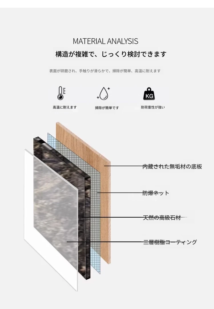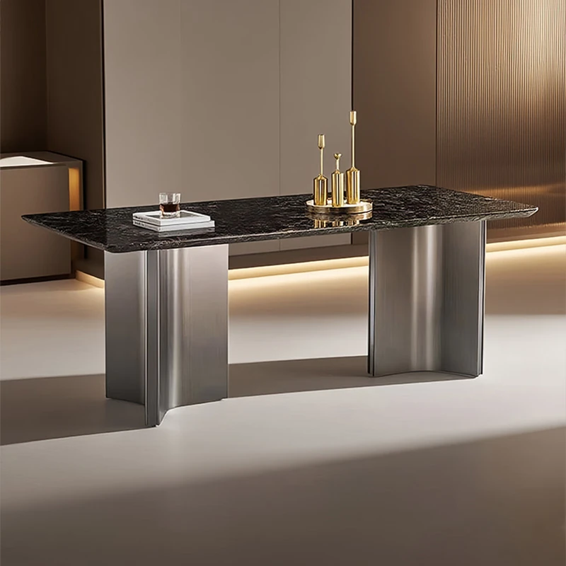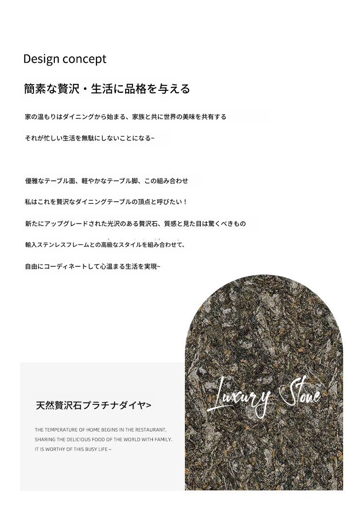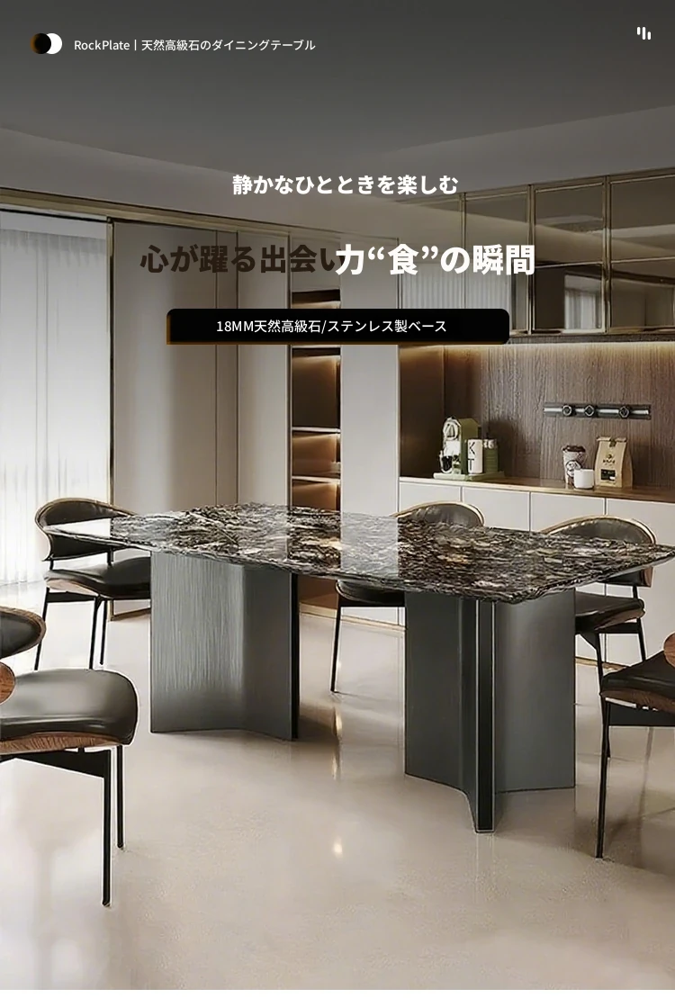 高級感溢れるモダンな長方形ダイニングテーブルセット - スタイリッシュな小型住宅にぴったりの贅沢な石製テーブルと椅子の組み合わせ!