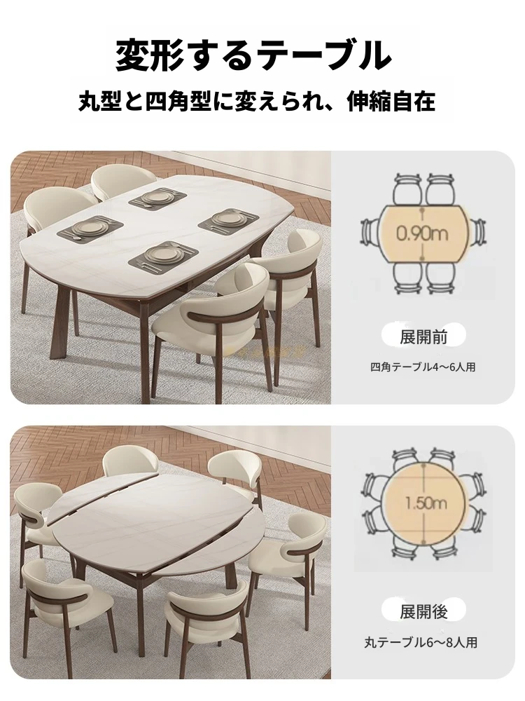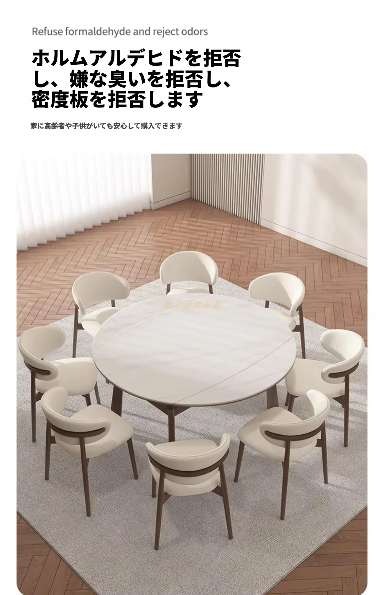 1.5M角丸兼用テーブル+8椅子【アップグレードホワイトアッシュフラッグシップ版】