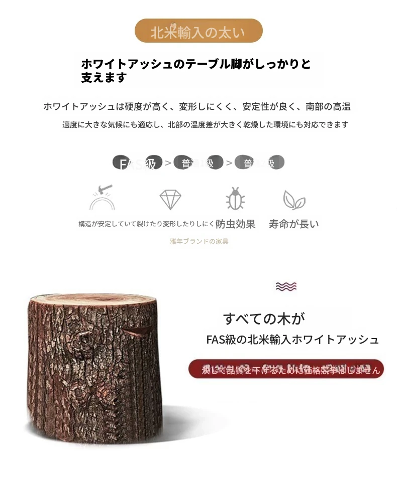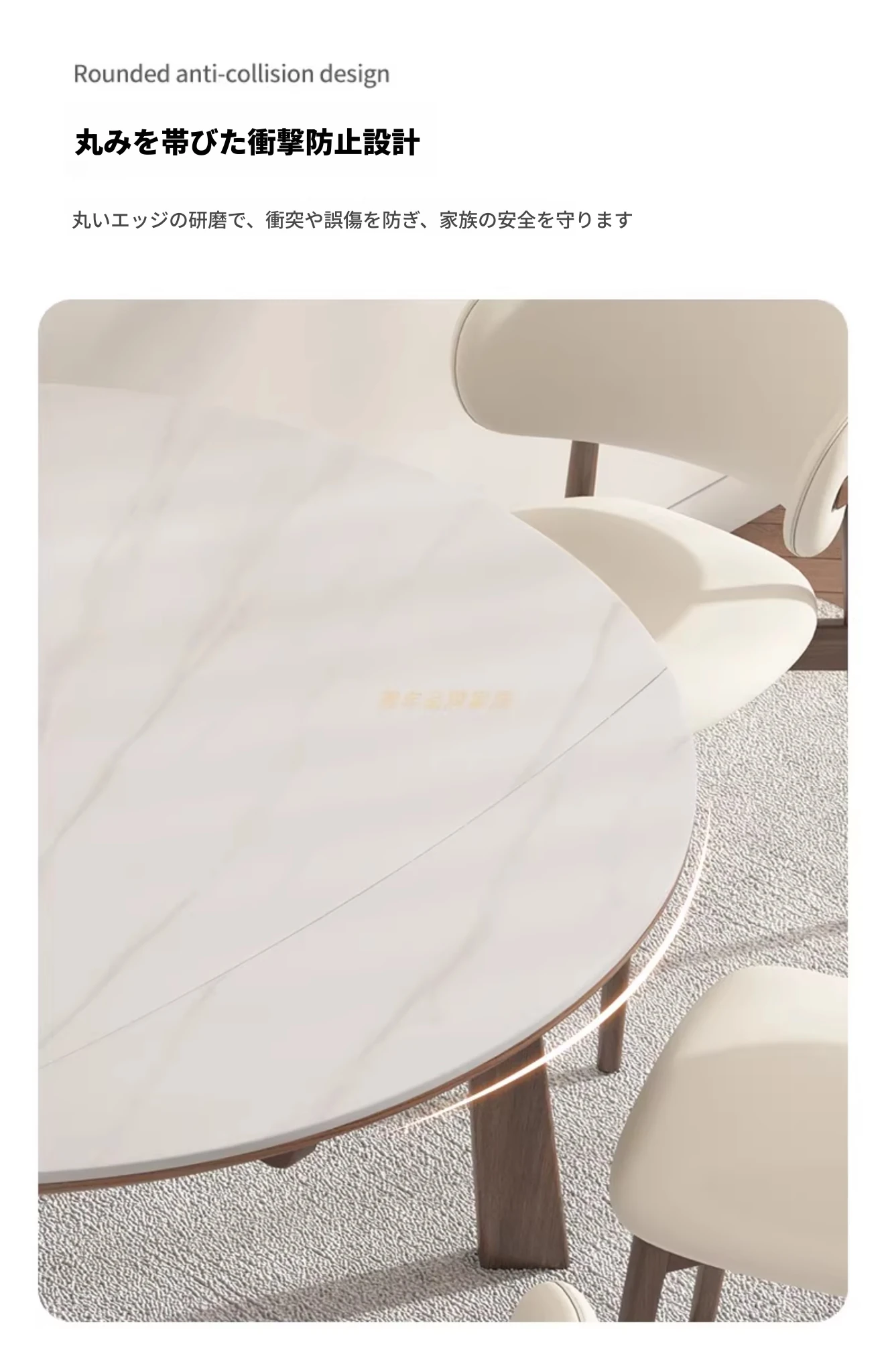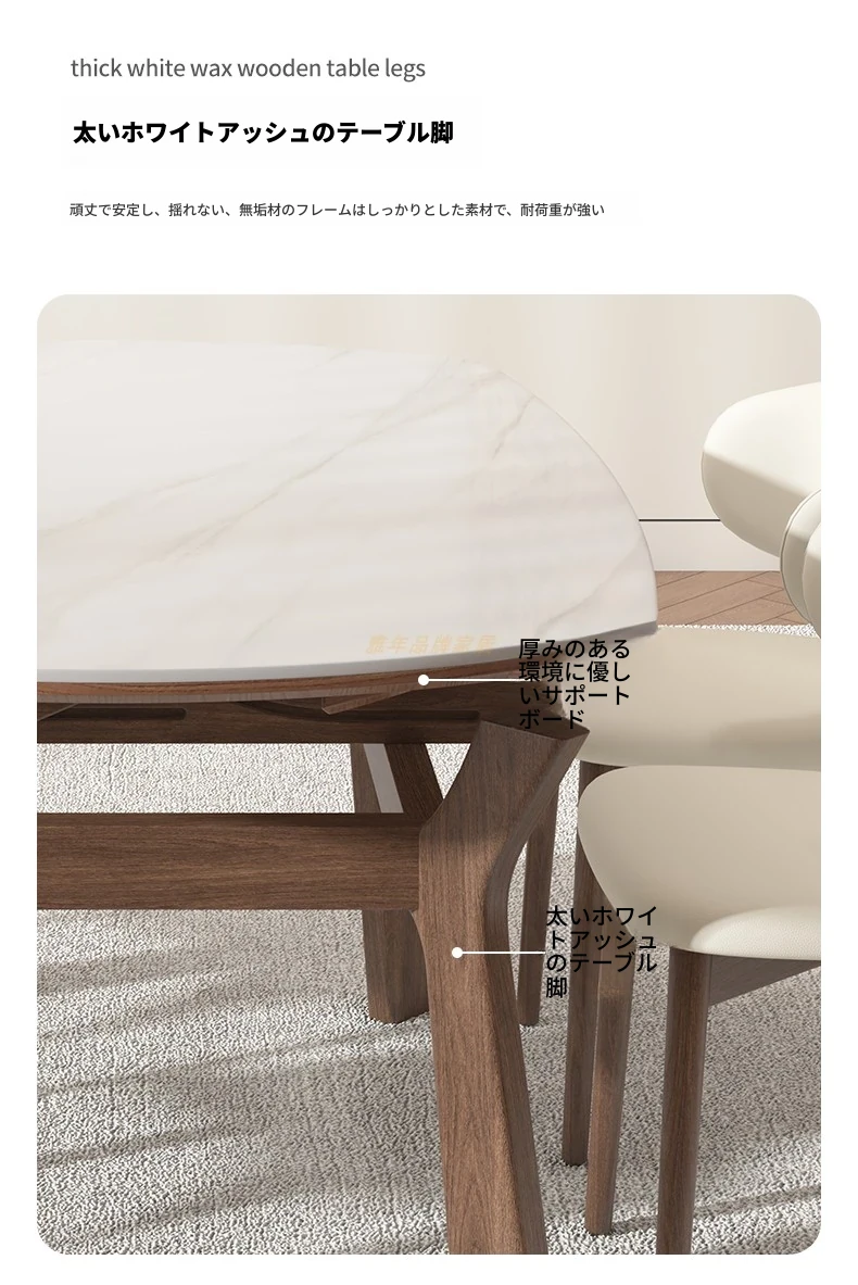 1.5M角丸兼用テーブル+6椅子【アップグレードホワイトアッシュフラッグシップ版】