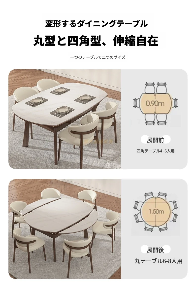 1.35M角丸兼用テーブル+8椅子【アップグレードホワイトアッシュフラッグシップ版】