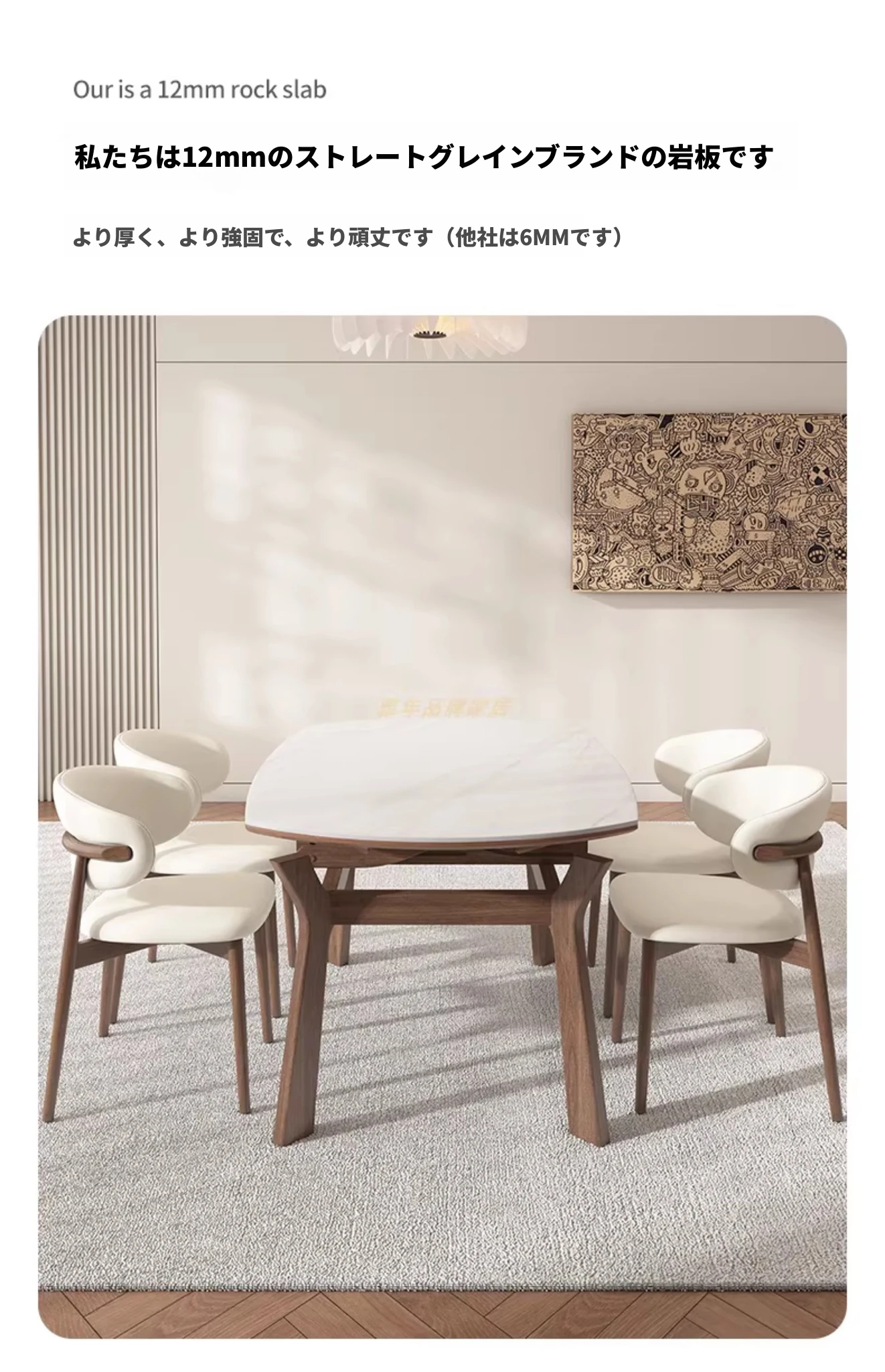 1.2M角丸兼用テーブル+6椅子【アップグレードホワイトアッシュフラッグシップ版】