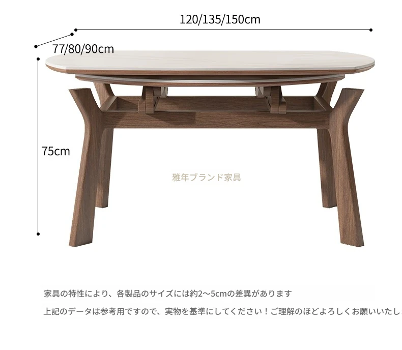 1.35M角丸兼用テーブル+4椅子【普通オーク版】
