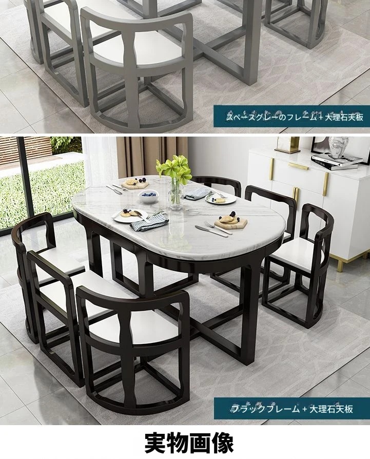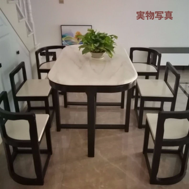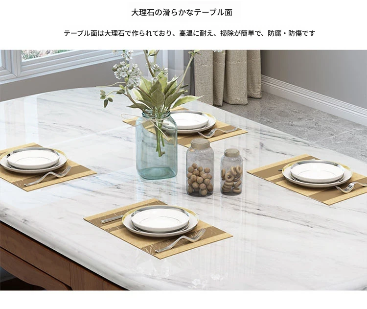香港・マカオ送料無料!大理石と無垢材のモダンでシンプルなダイニングテーブル&チェアセット。小型住宅にぴったりなスタイリッシュなリビング用ダイニング家具。快適な食事空間を演出します!