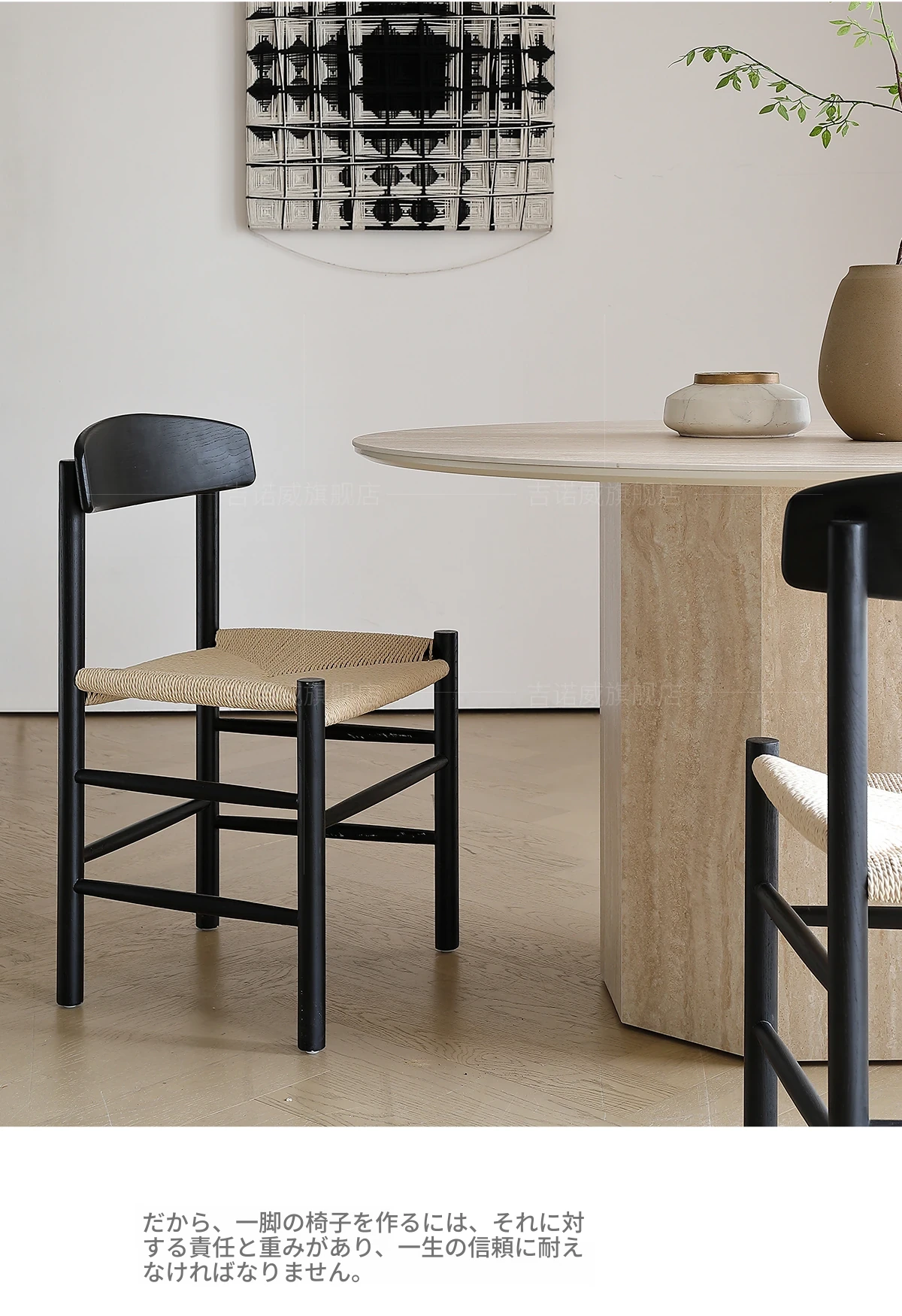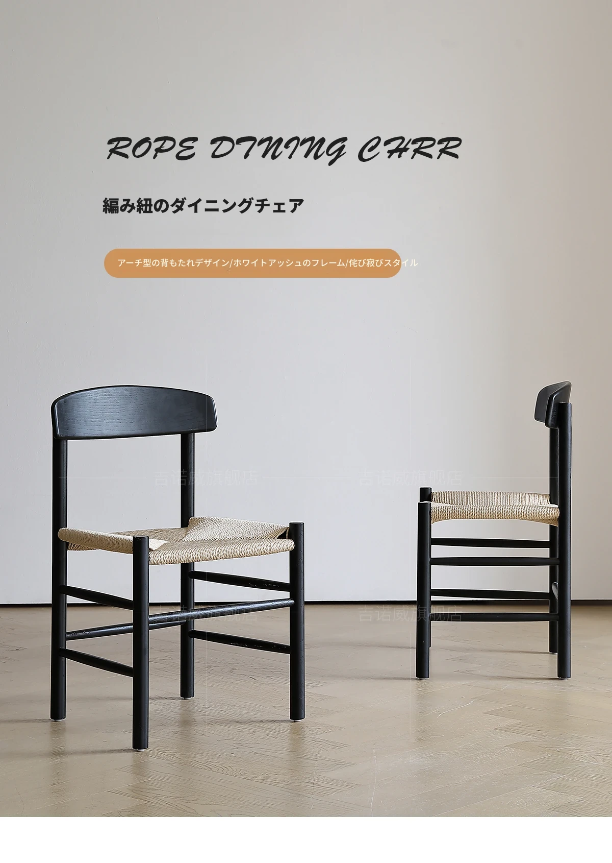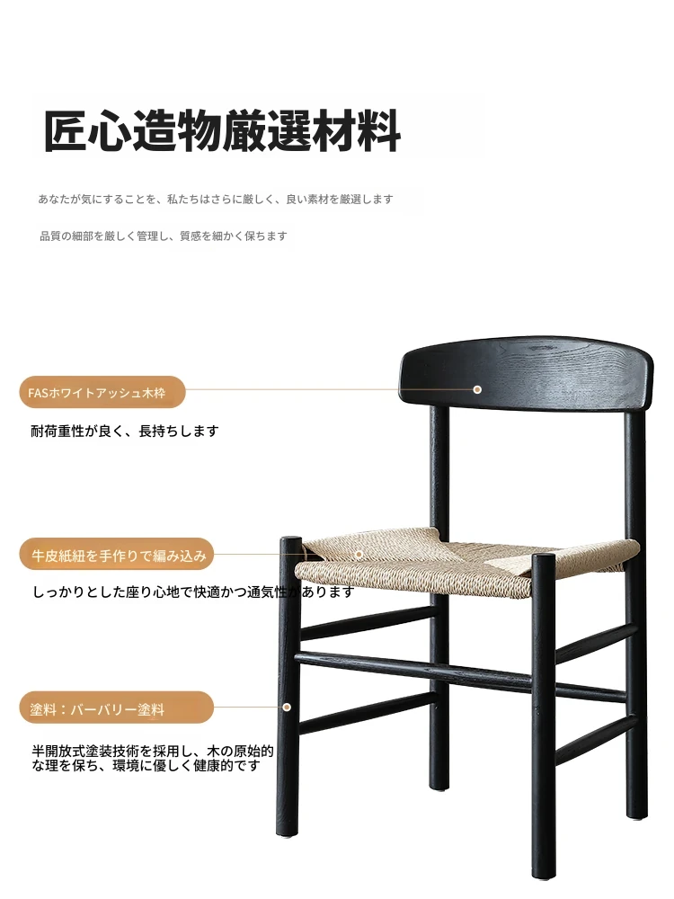 ジノウェイ 和の美を感じる侘寂風ダイニングチェア 背もたれ付き リラックスできる家庭用 書斎やカフェ、茶室に最適なロープ編み無垢材チェア