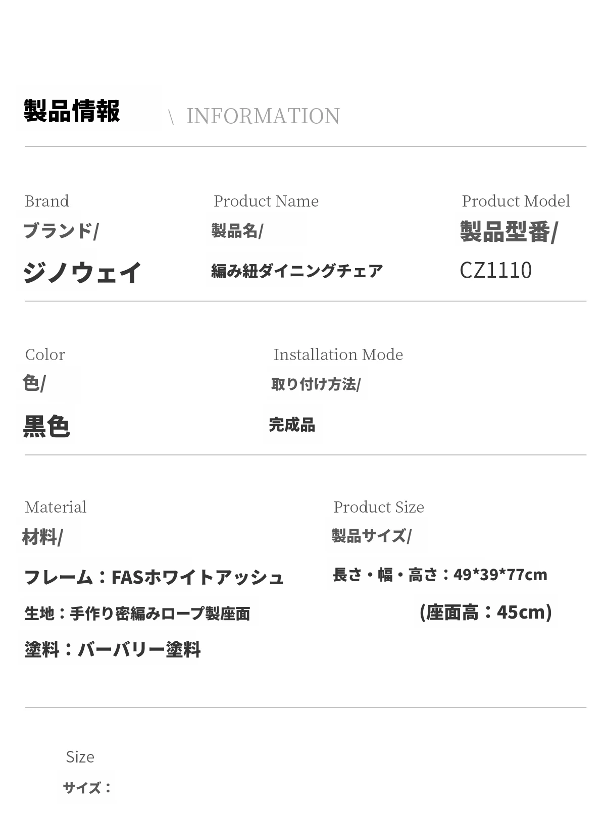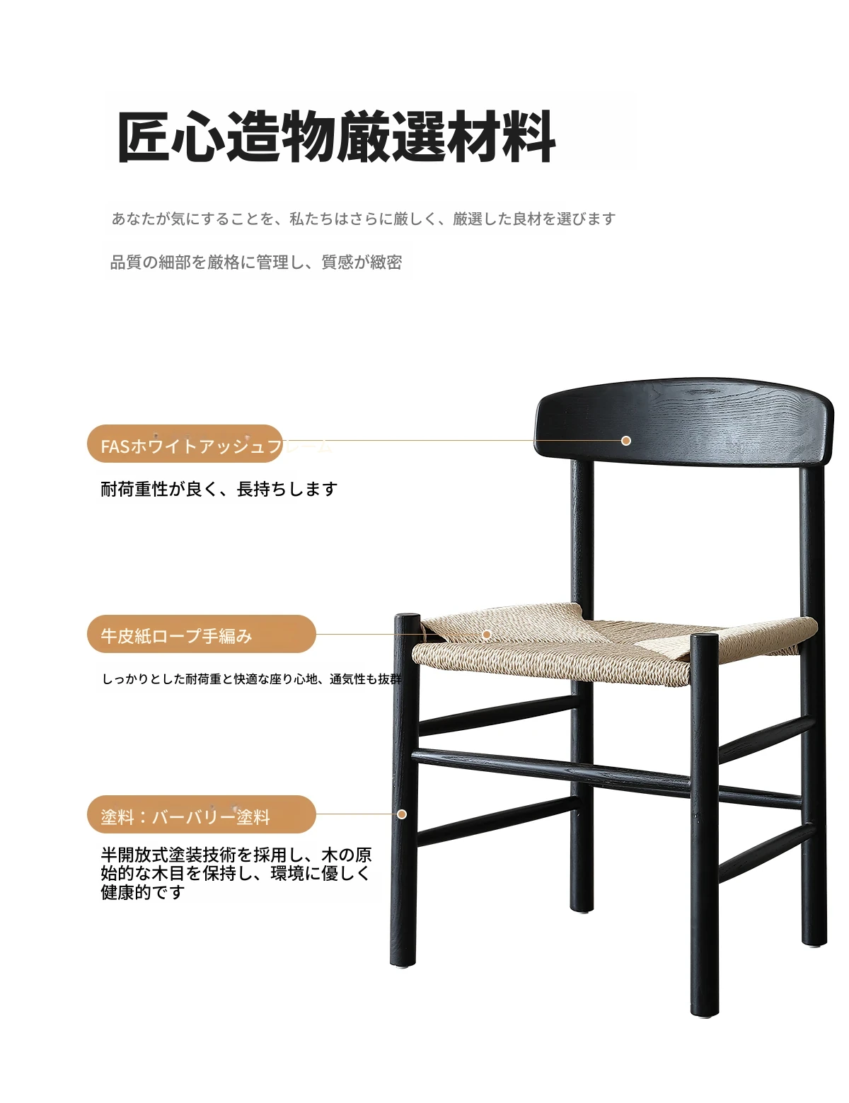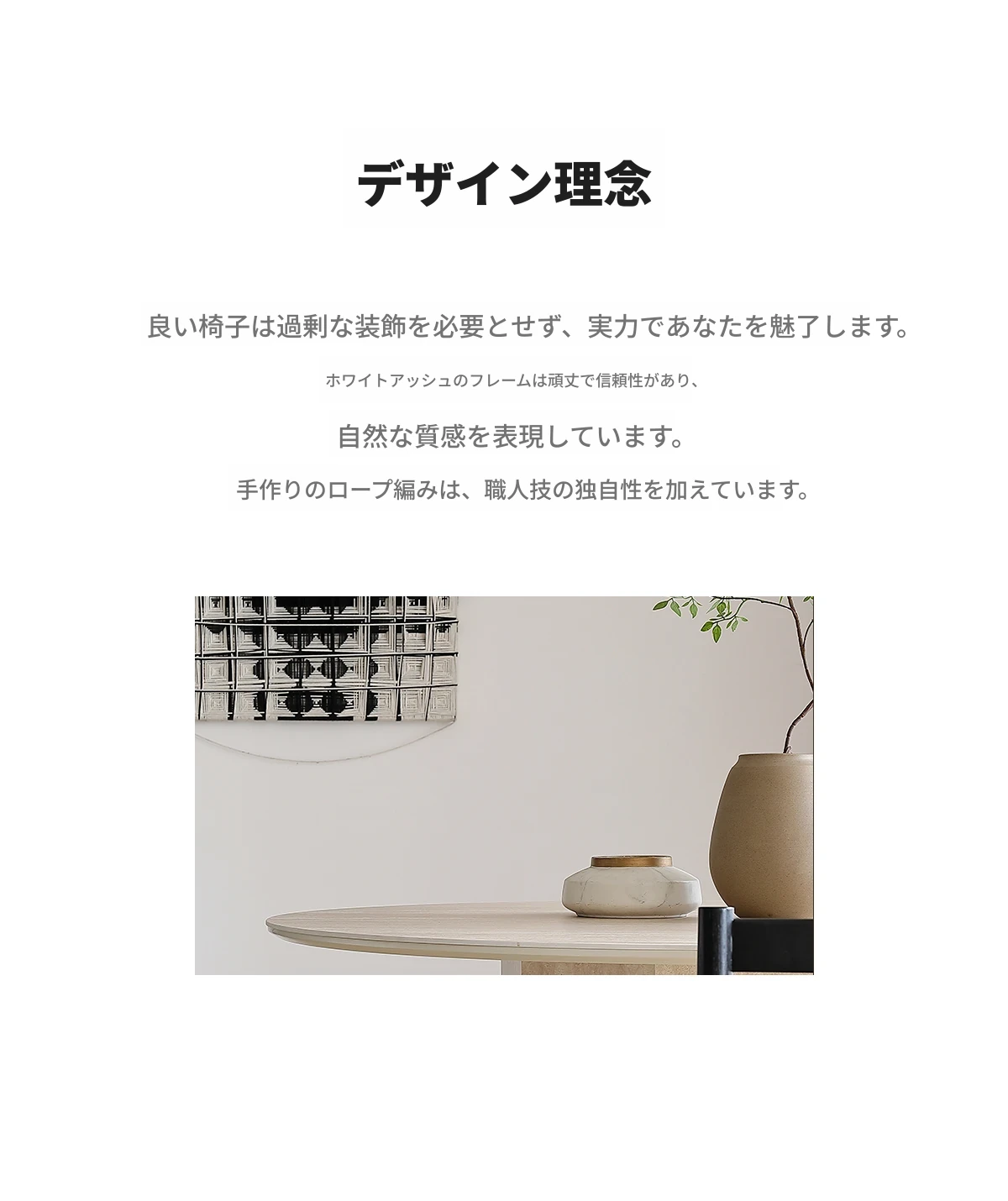 ジノウェイ 和の美を感じる侘寂風ダイニングチェア 背もたれ付き リラックスできる家庭用 書斎やカフェ、茶室に最適なロープ編み無垢材チェア