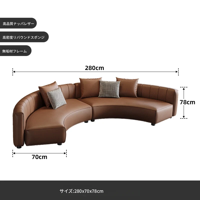 2.8メートルコーヒー色アーチソファ(ナッパレザー)