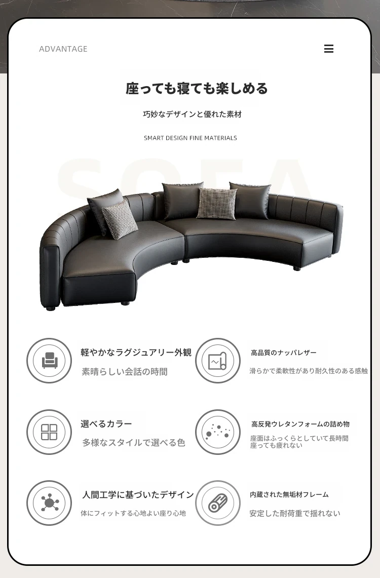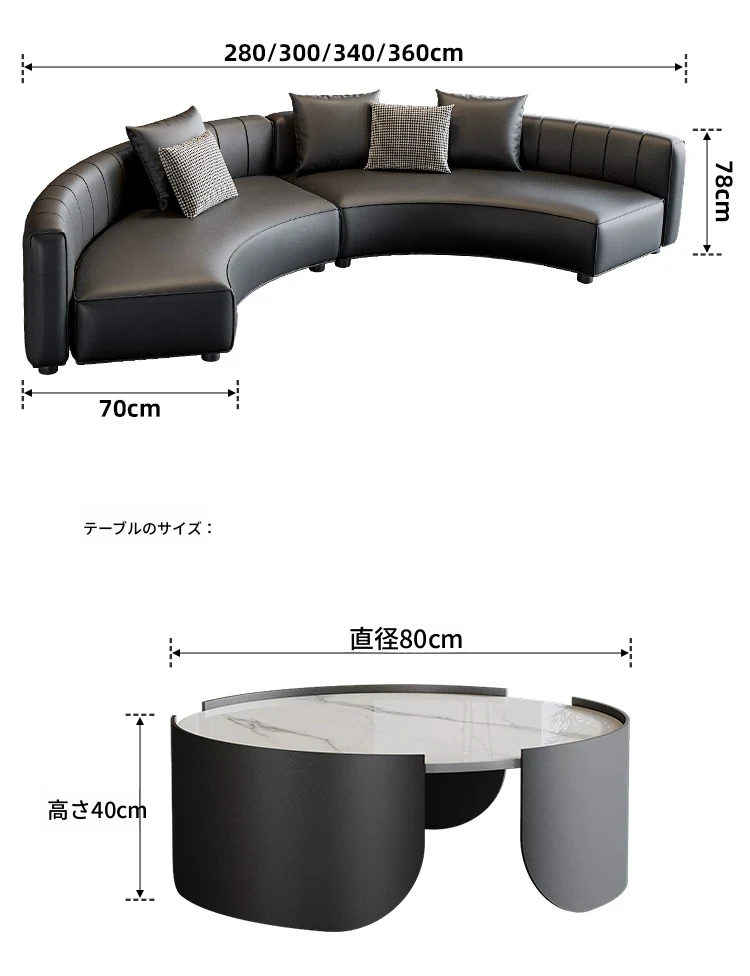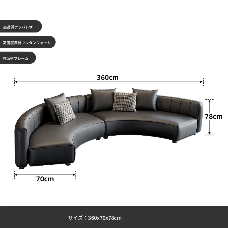 3.6メートル黒色アーチソファ(ナッパレザー)