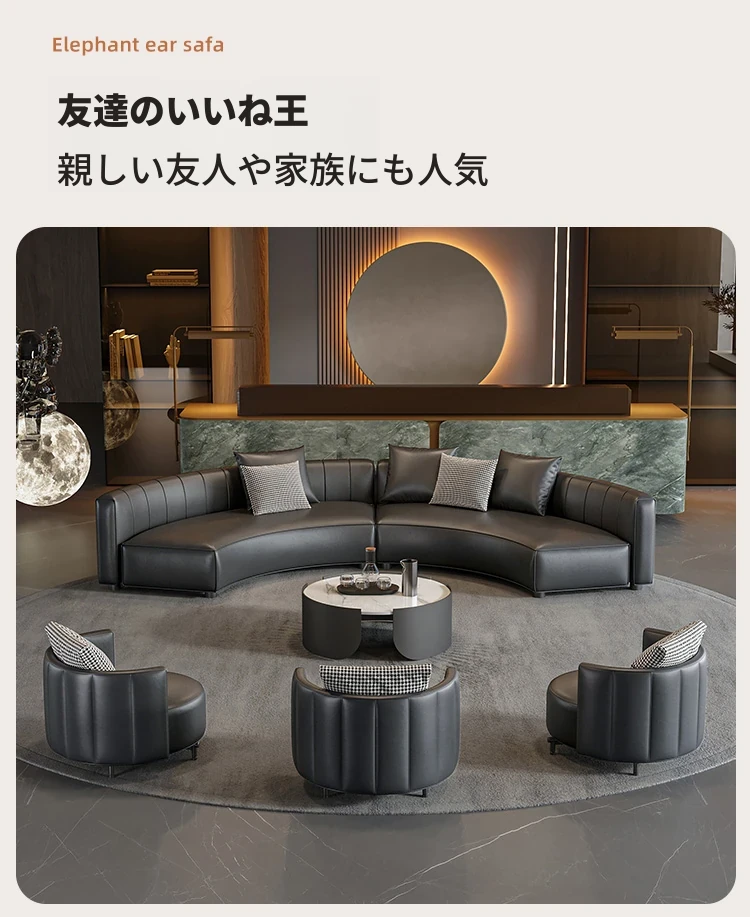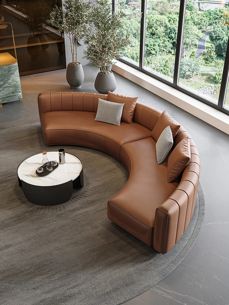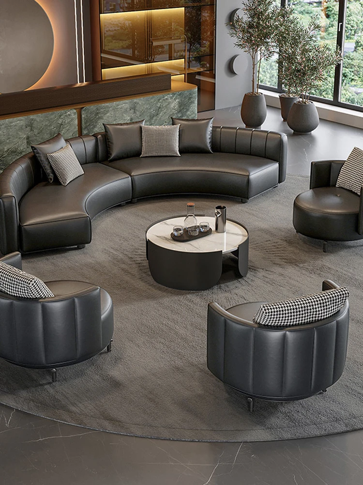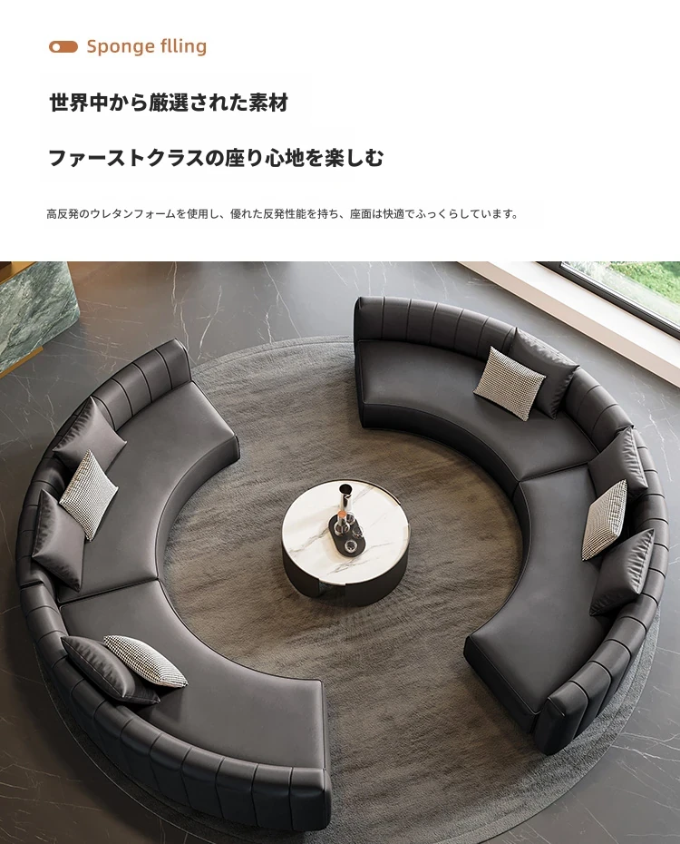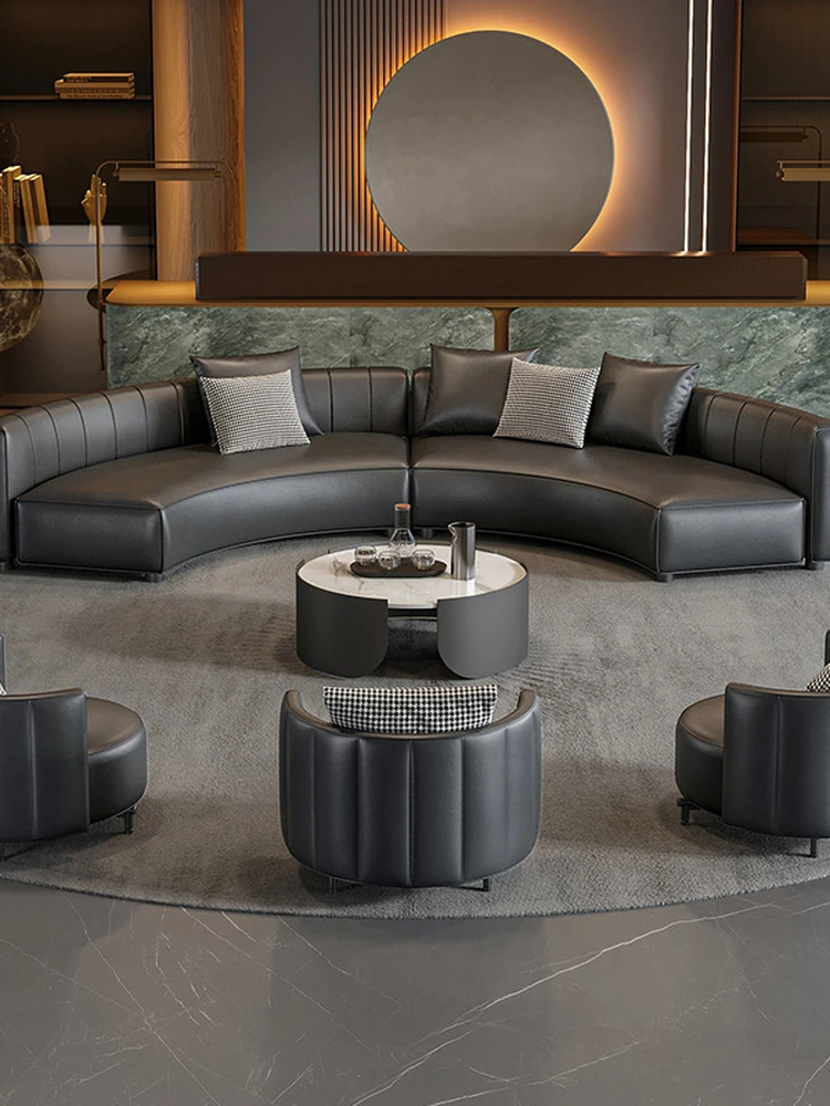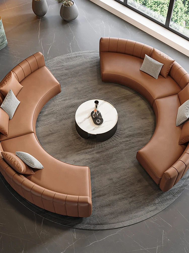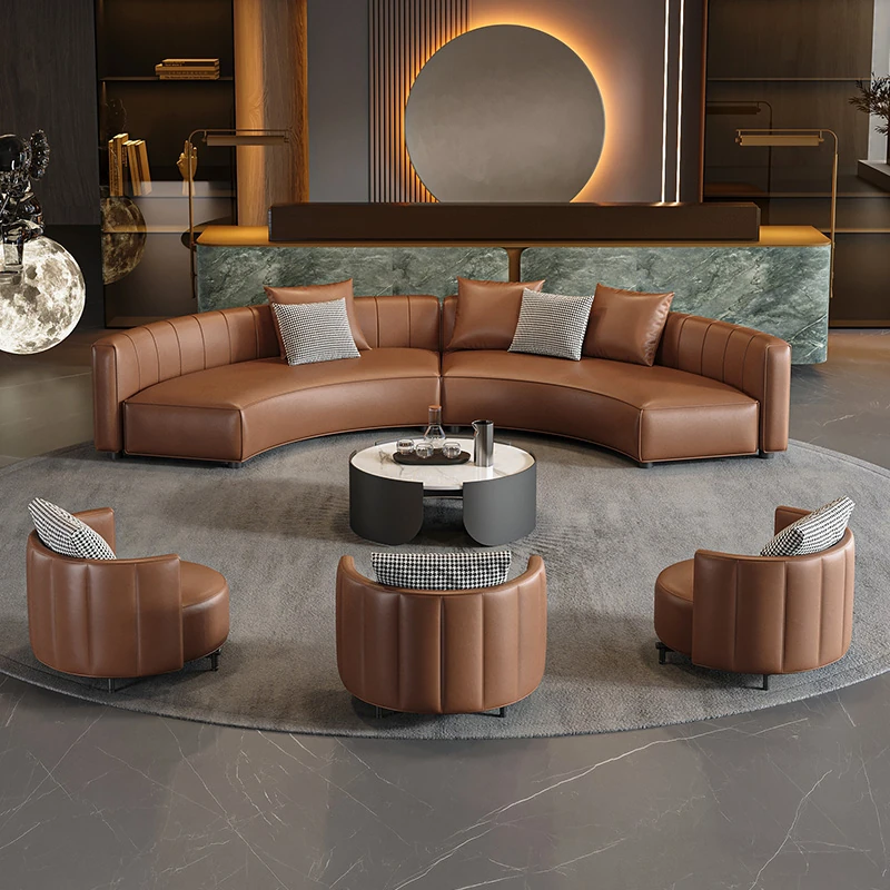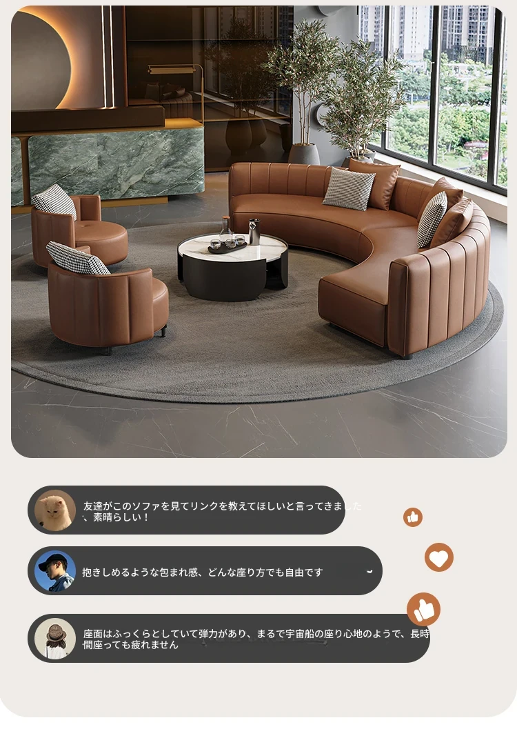 イタリアンスタイルのホテルロビー用半円形デザインソファ|快適な商談スペースを演出する高級受付ソファ|洗練された空間を提供する理想的な接客用ソファ