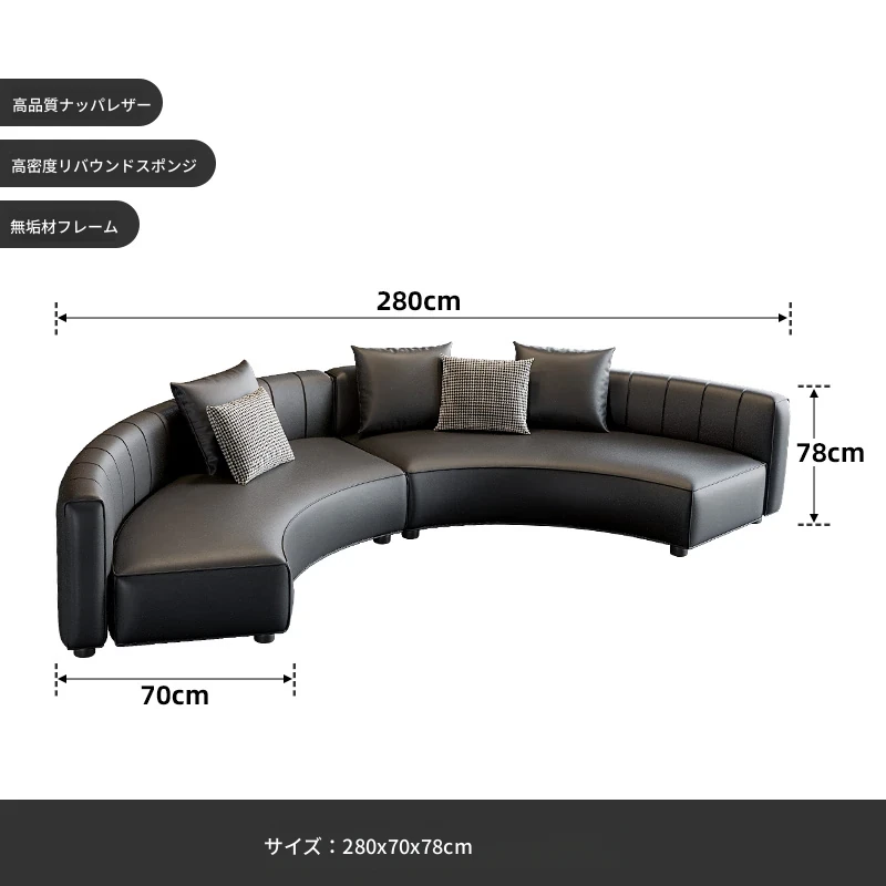 2.8メートル黒色アーチソファ(ナッパレザー)