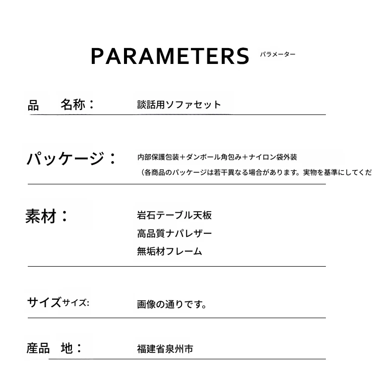 3メートル黒色ソファ+黒色1人用ソファ3脚+80センチの岩板テーブル