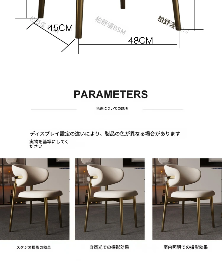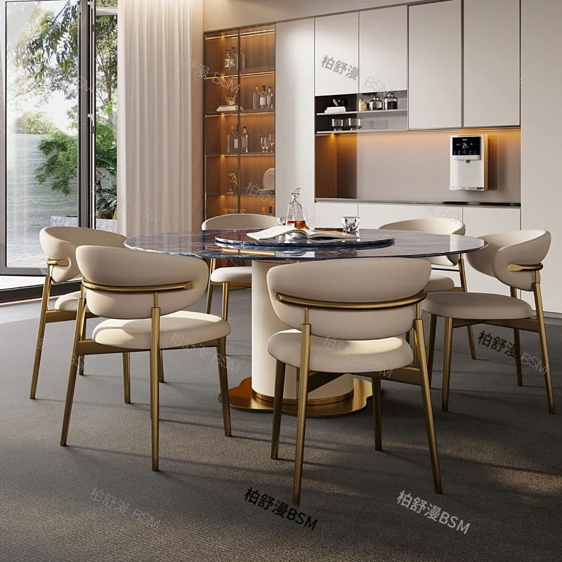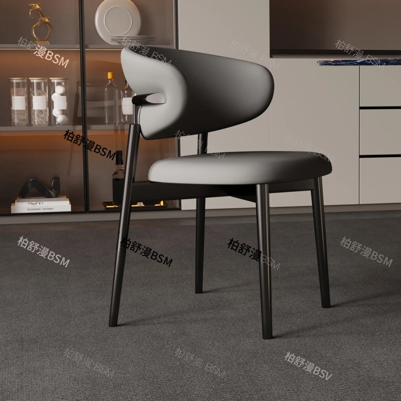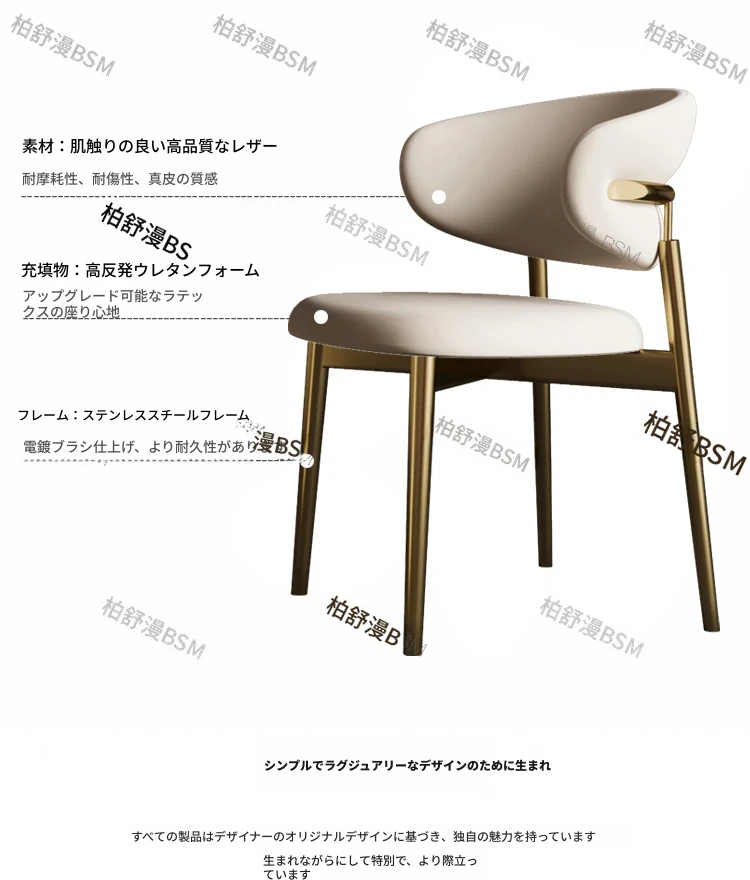 イタリアンラグジュアリー高級別荘用本革ダイニングチェア - シンプルで洗練されたデザイン、食事や商談に最適!ホテル向けのステンレススチール製リラックスチェア。