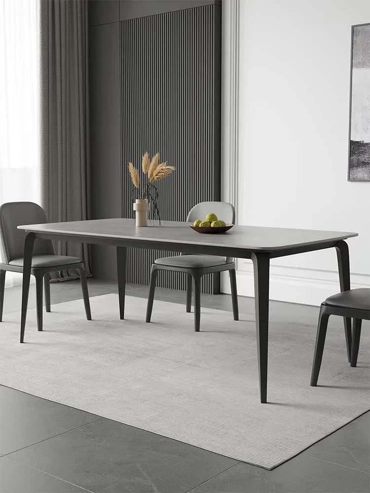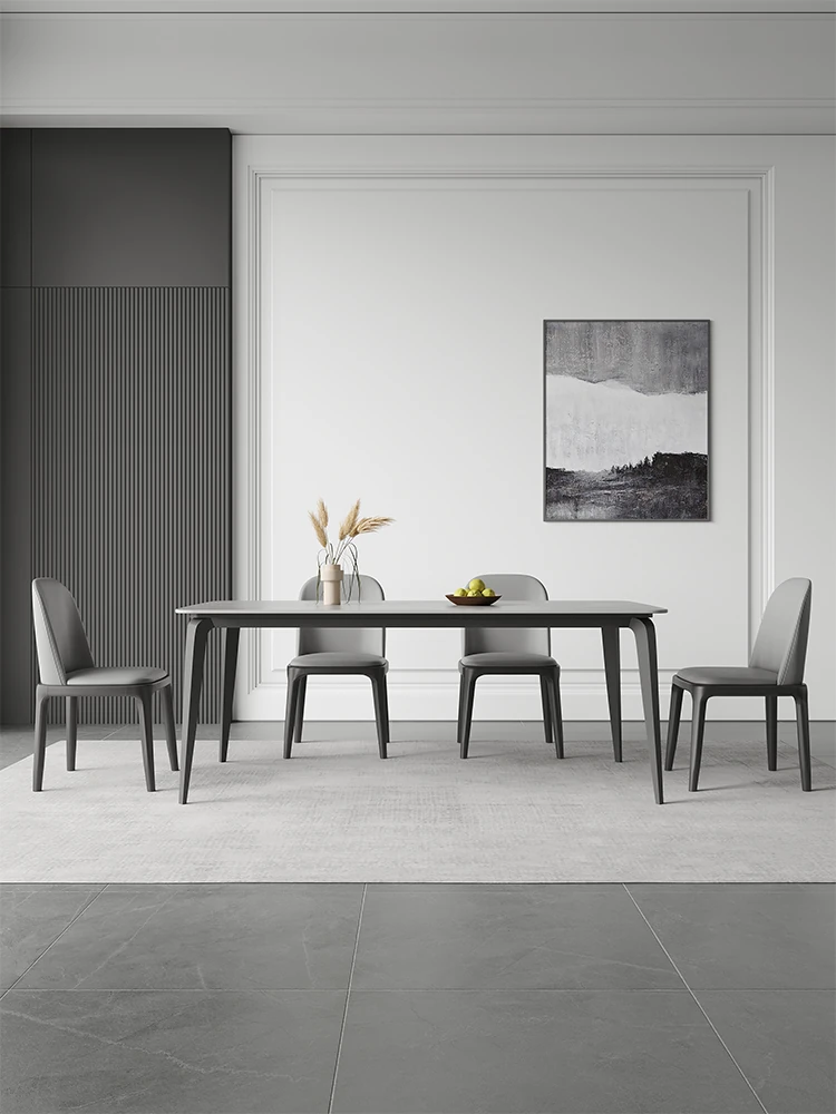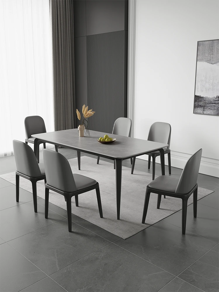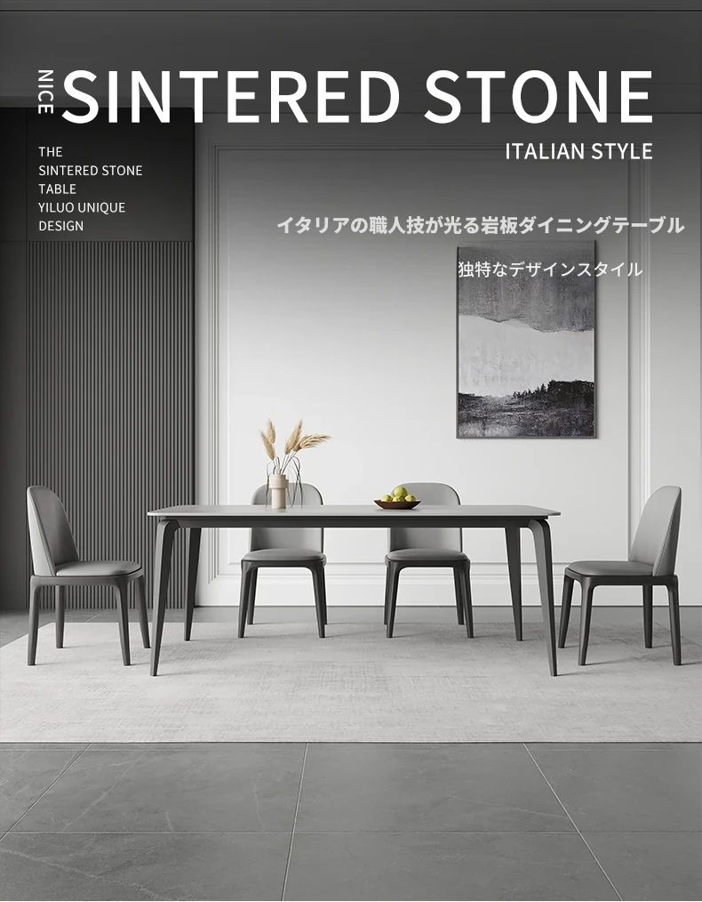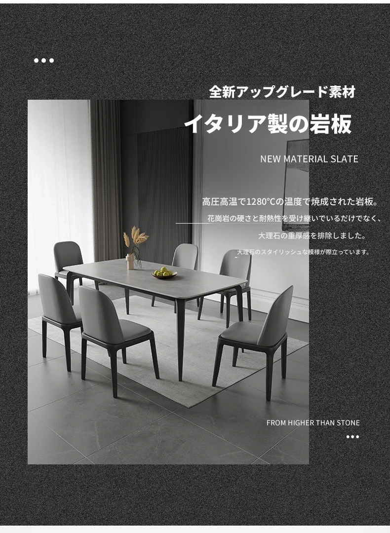 イタリアンスタイルの岩板ダイニングテーブル&チェアセット - カーボンスチール製、コンパクトなモダンデザインで、食事をより上質に演出。小さなスペースにも最適なラグジュアリーなアイテムです!
