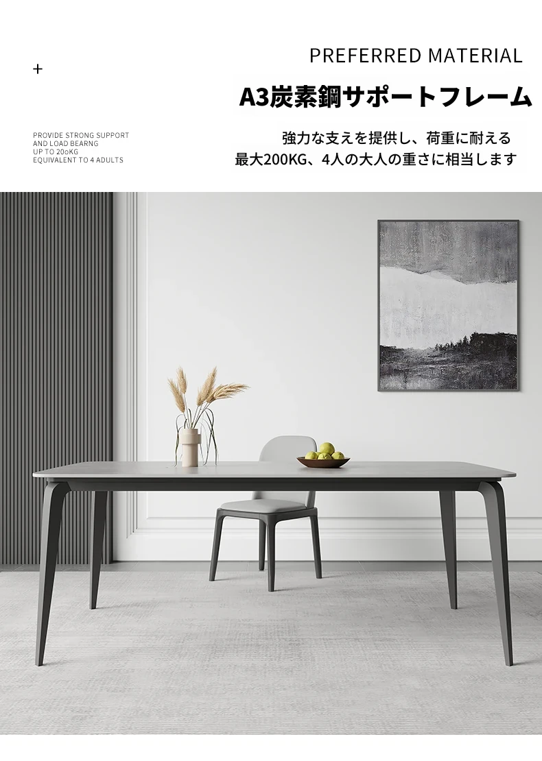 12mmイタリアンスタイルのラミネートボード+カーボンスチールフレームのダイニングテーブル
