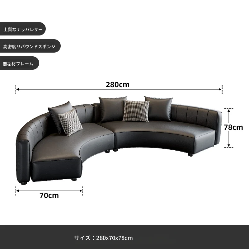 2.8メートル黒色アーチ型ソファ(ナパ皮)