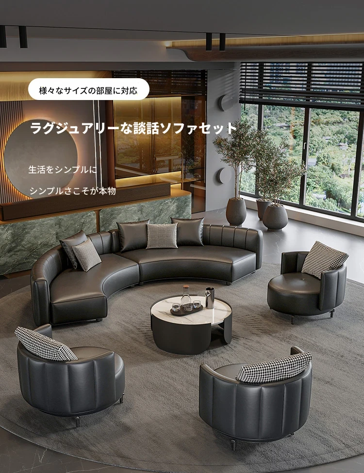 3.4メートル黒色アーチ型ソファ(ナパ皮)