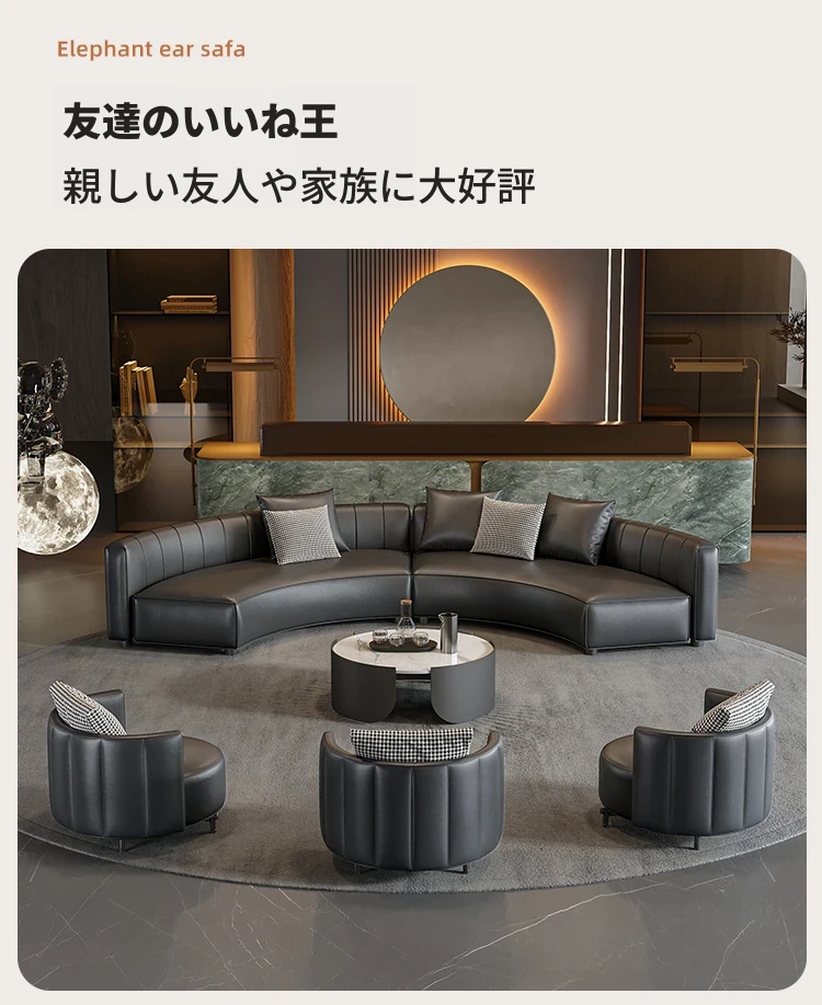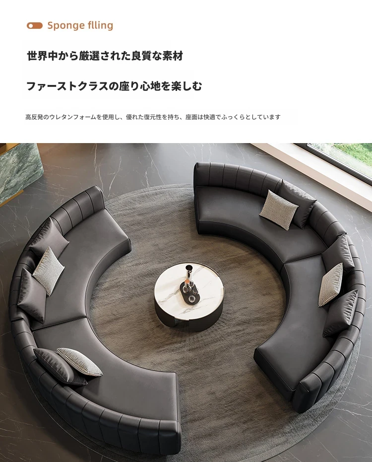 3メートル黒色アーチ型ソファ(ナパ皮)