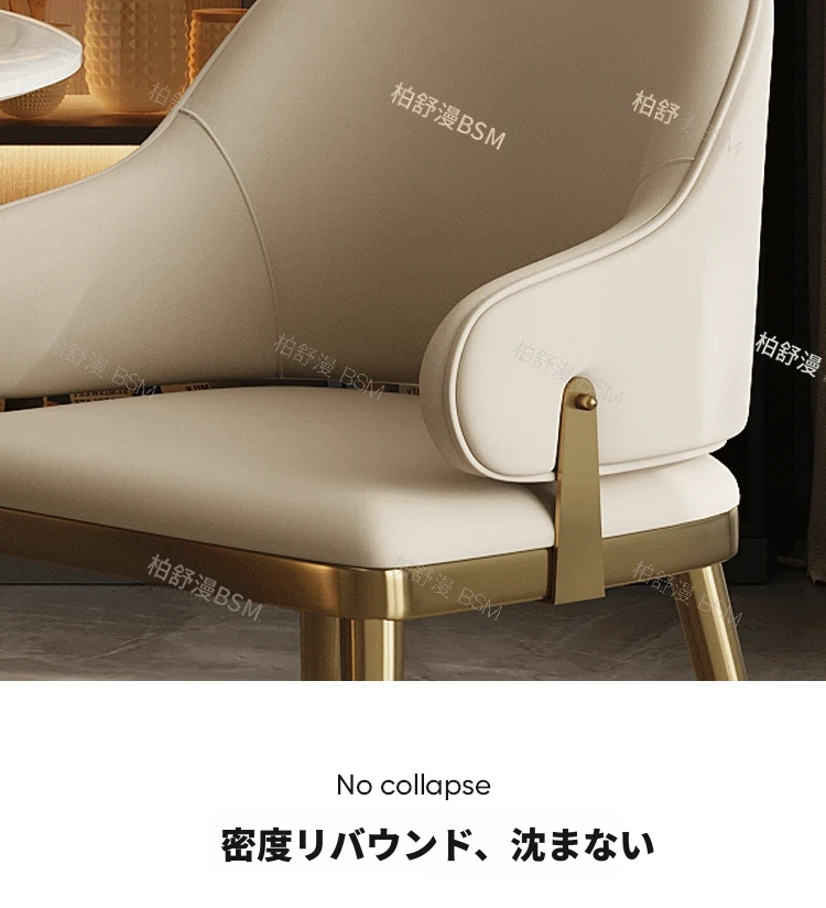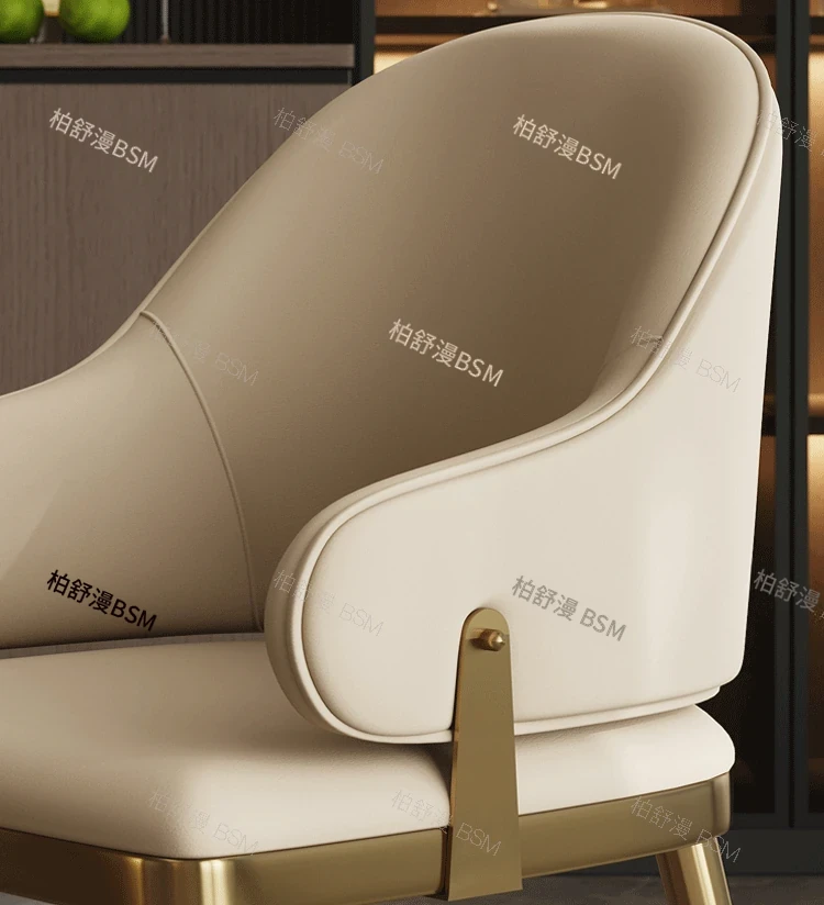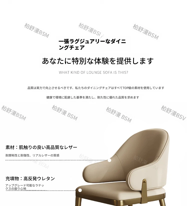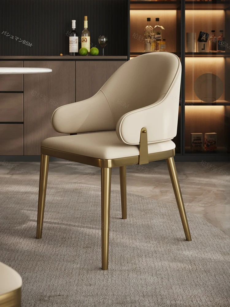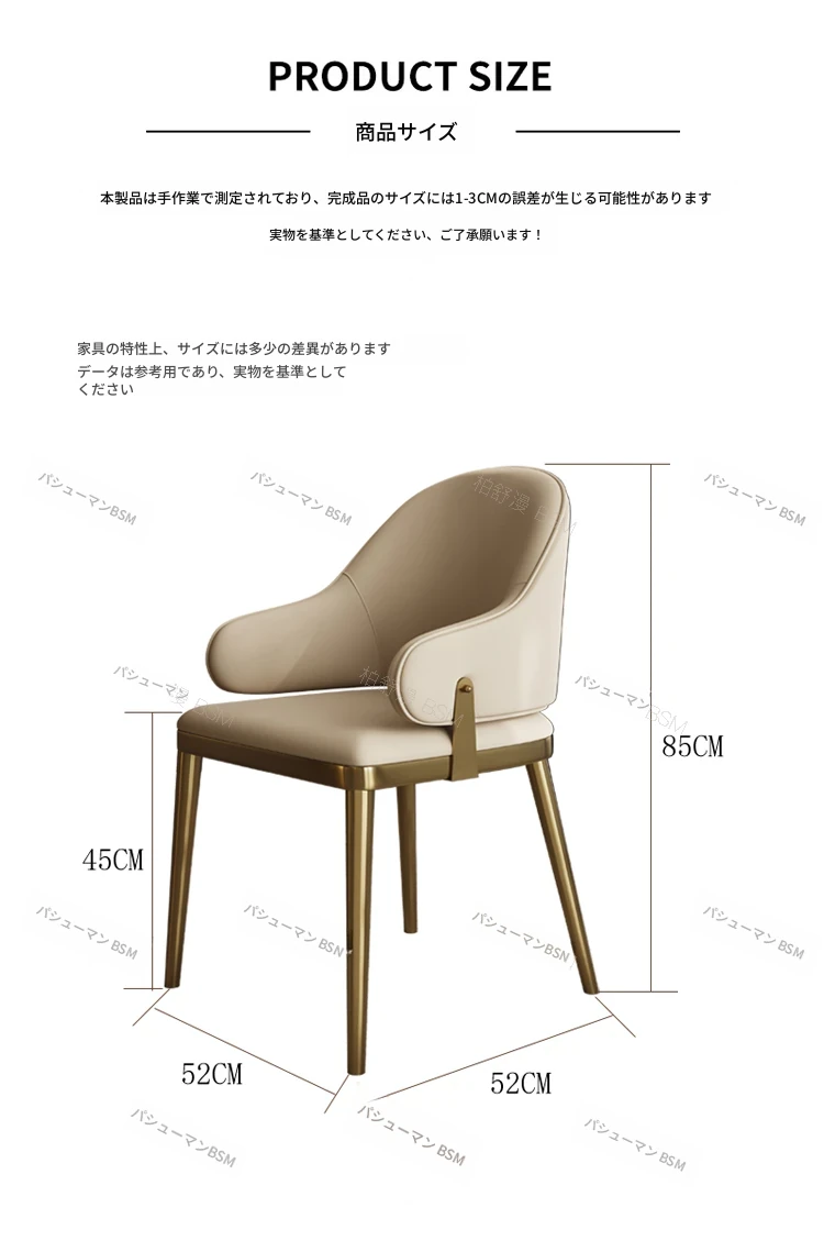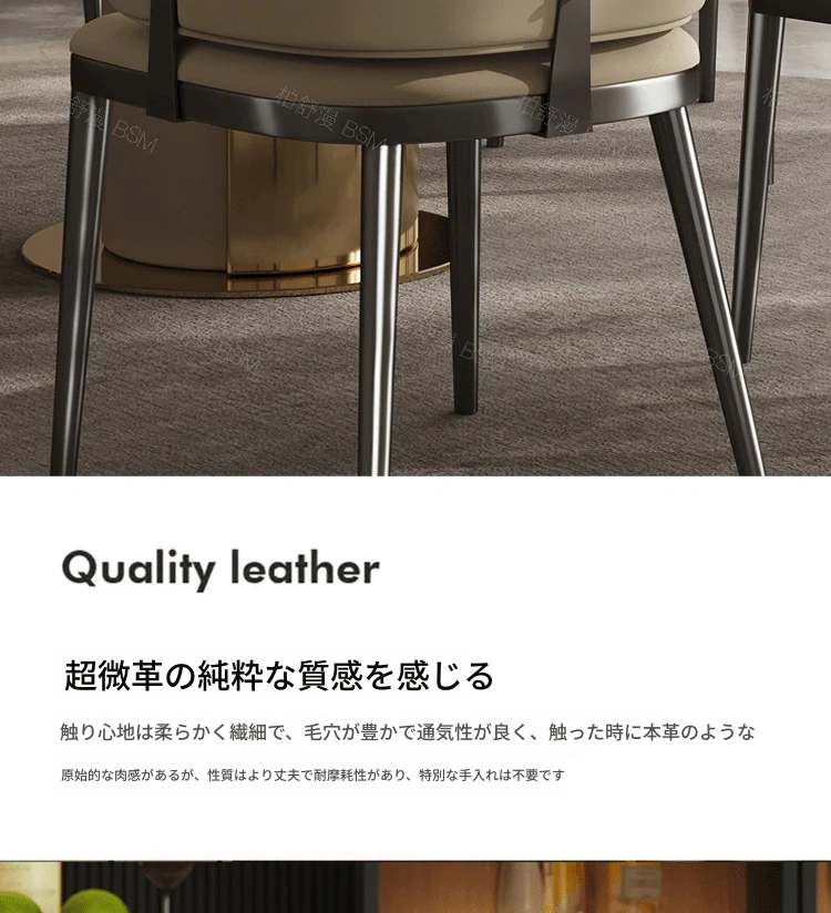 本革製のイタリアンスタイルの高級ダイニングチェア - ヴィラや高級レストランに最適なデザイナーのステンレススチールアームチェア。優雅な雰囲気で、特別なひとときを演出します。